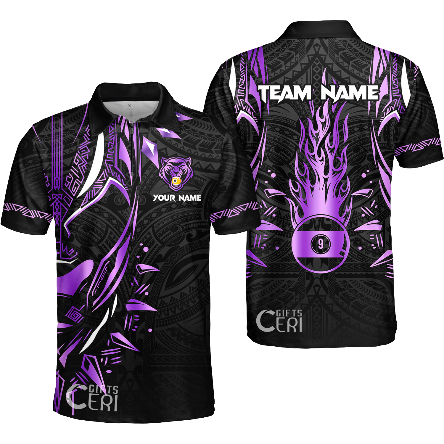 Customized Billiards Quarter-Zip Polo Shirt, Panther Forever Flaming 9 Ball Personalized Jersey Gift For Billiard Players