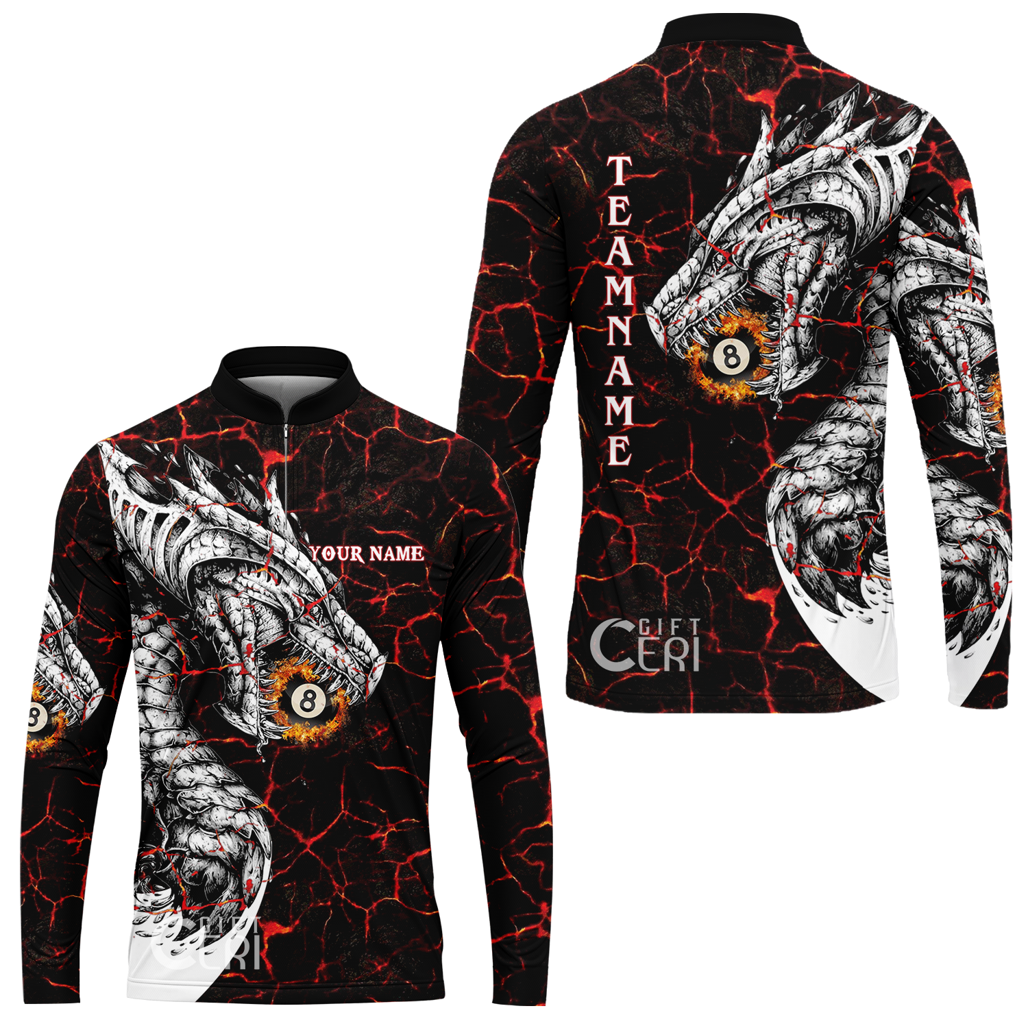 Customized Billiards Stand Collar Quarter-Zip Long Sleeve Jersey, Magma Pattern And Dragon 8 Ball Jersey