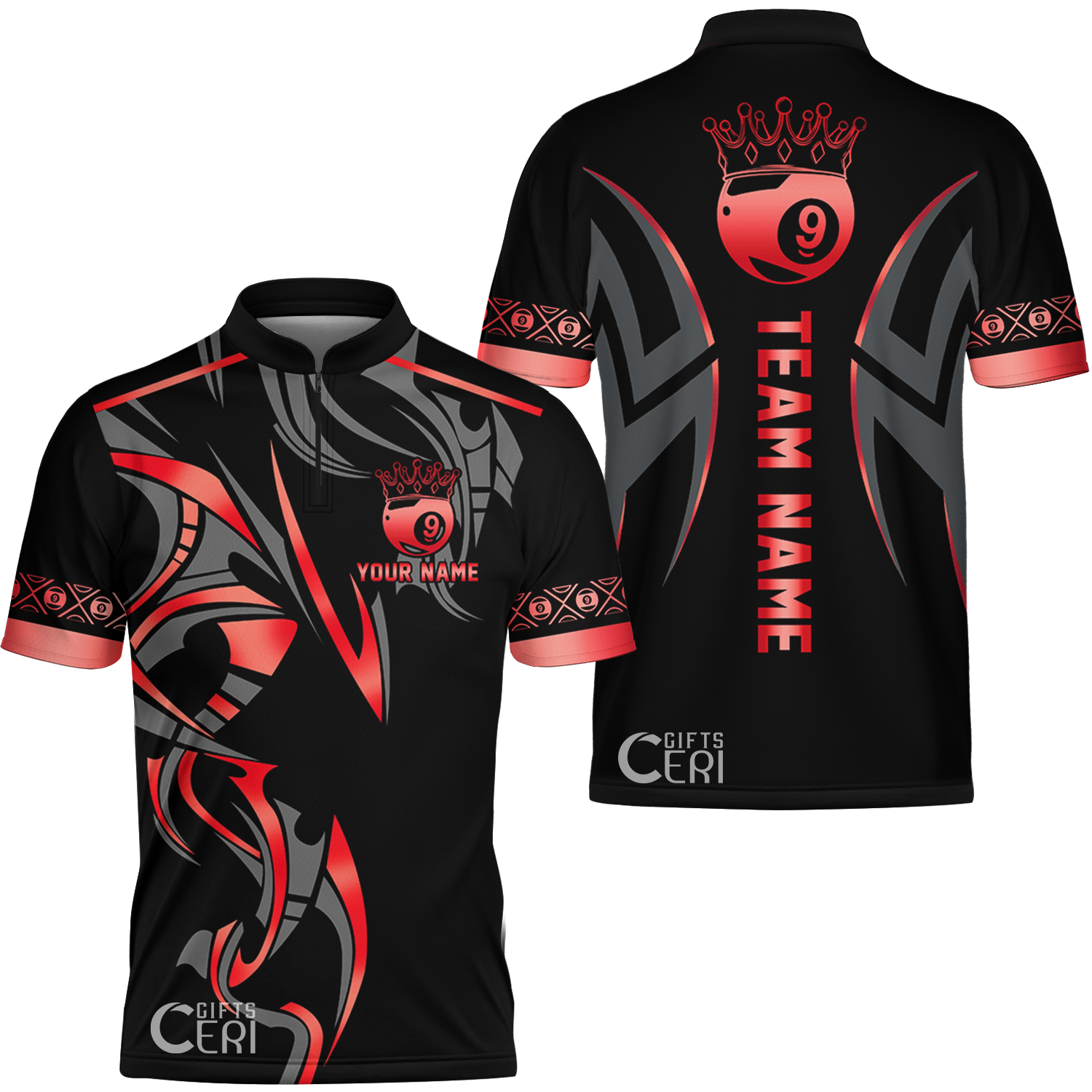 Customized Billiards Stand Collar Quarter-Zip Short Sleeve Jersey, Crown 9 Ball Esport Jersey