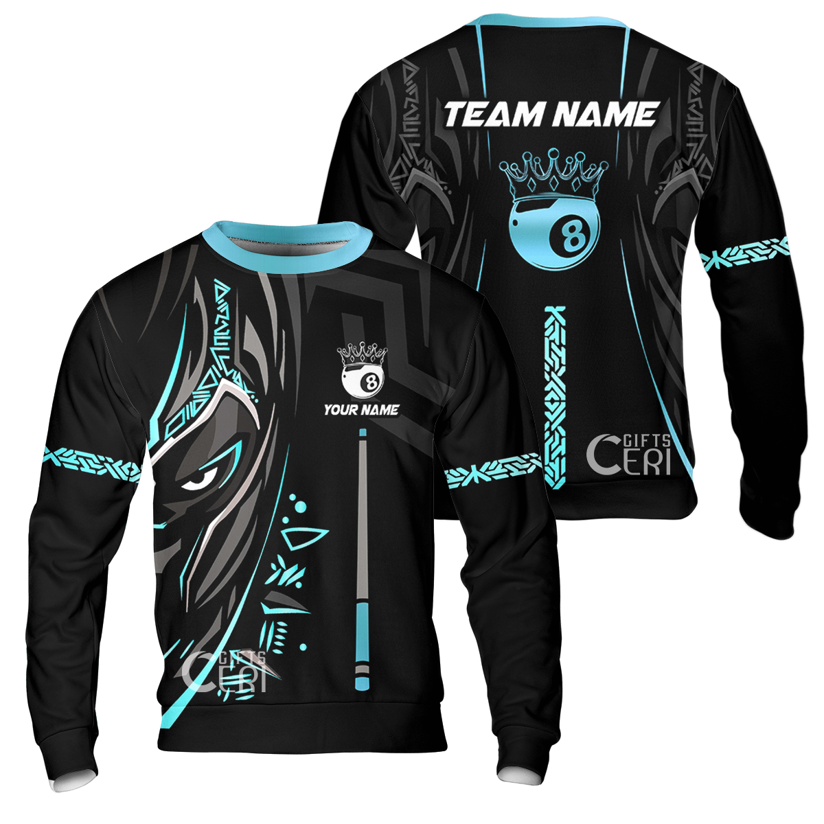 Customized Billiards Sweatshirt, Black Panther With Snooker Cue and 8 Ball Crown, 8 Ball Pool Jersey