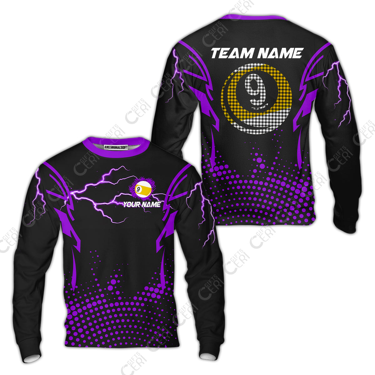 Customized Billiards Sweatshirt, Lightning Graphics With Dots 9 Ball Pool Jersey