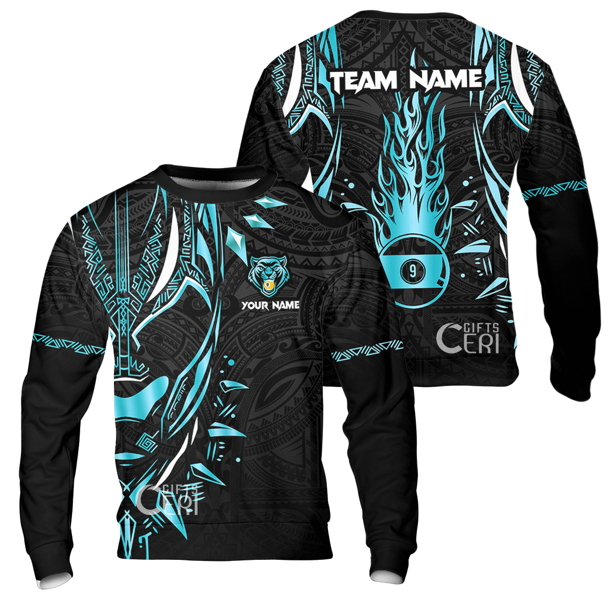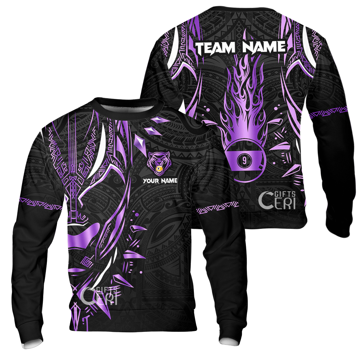 Customized Billiards Sweatshirt, Panther Forever Flaming 9 Ball Personalized Jersey Gift For Billiard Players