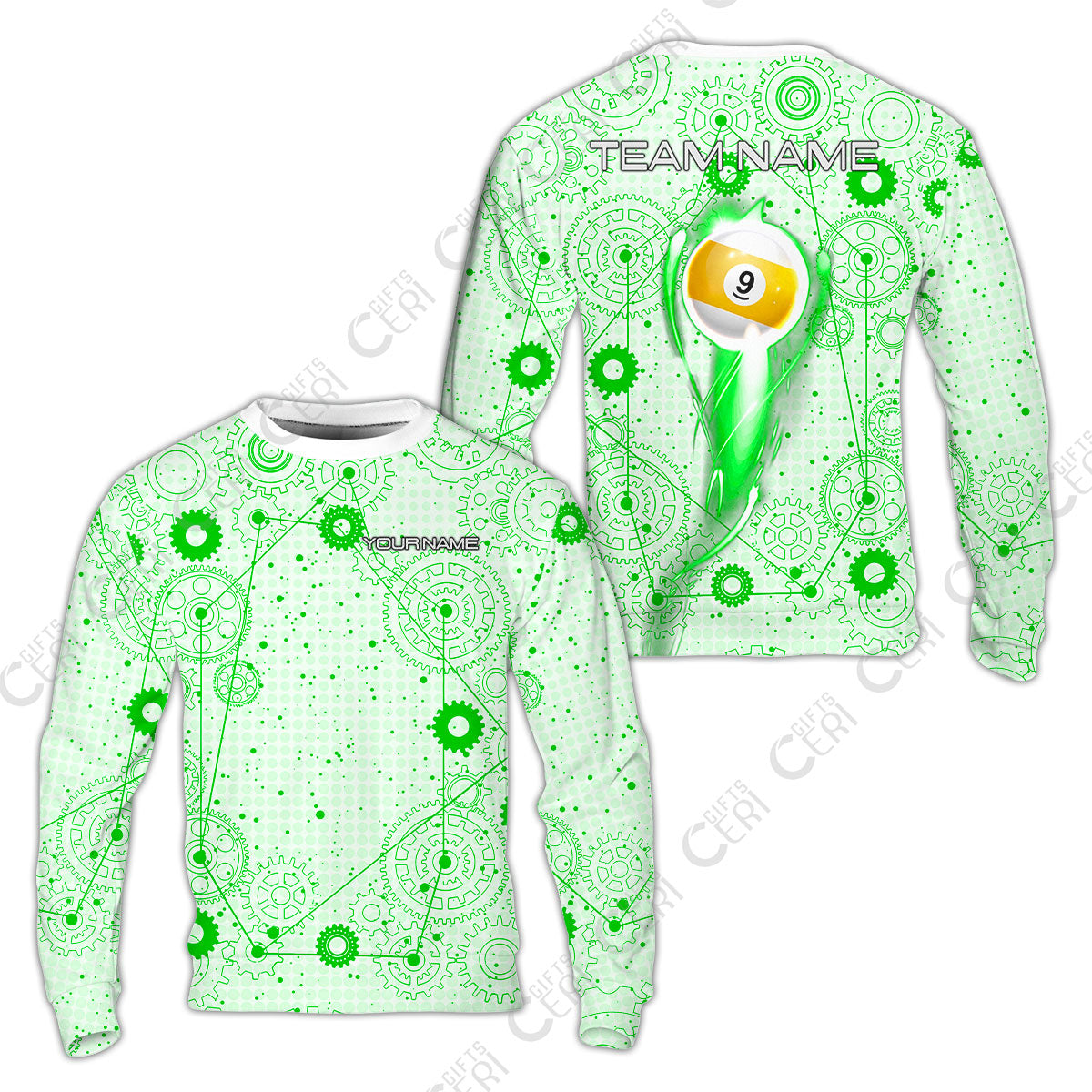 Customized Billiards Sweatshirt, Personalized Billiard 9 Ball Lighting Gear Pattern Jersey Gift For Billiard Players