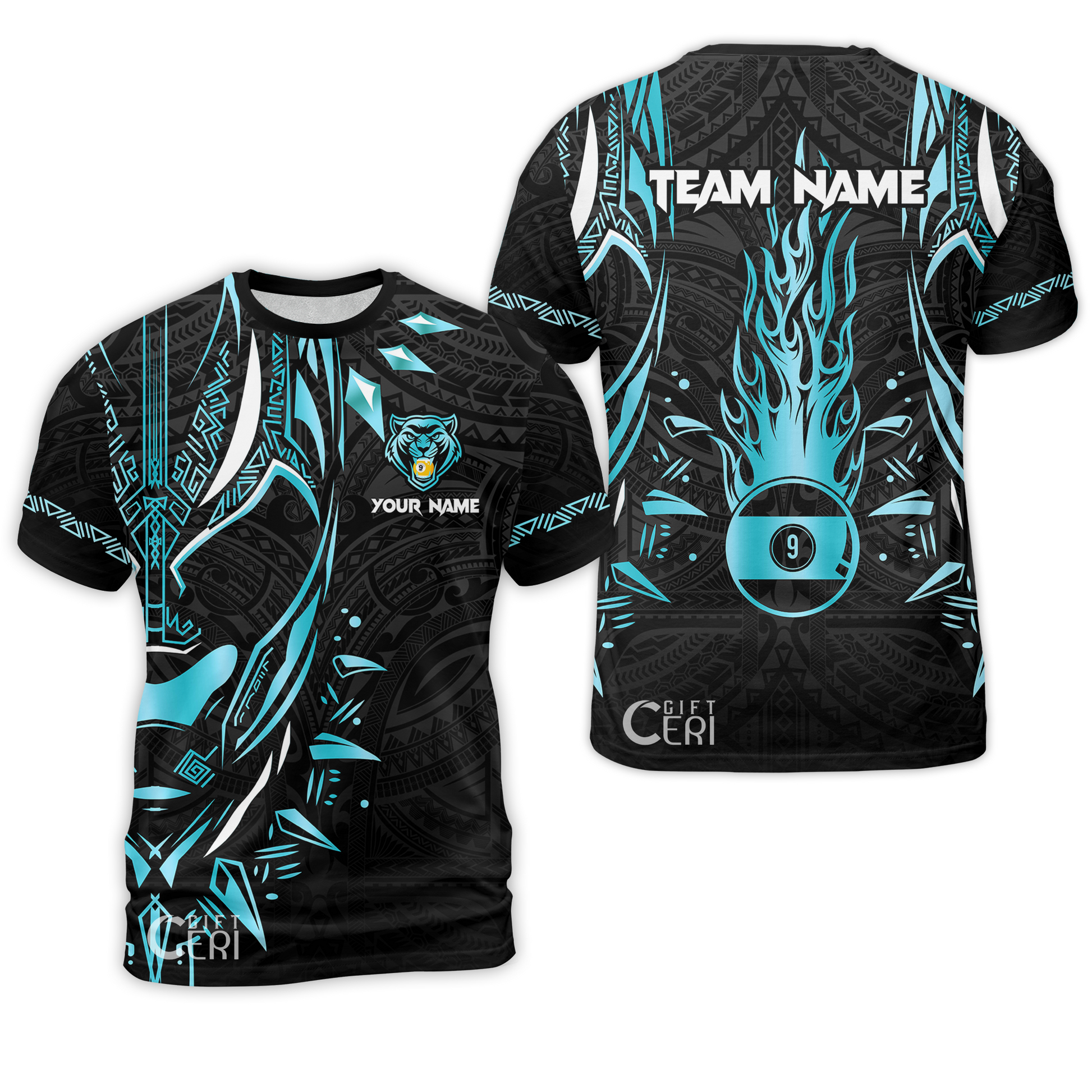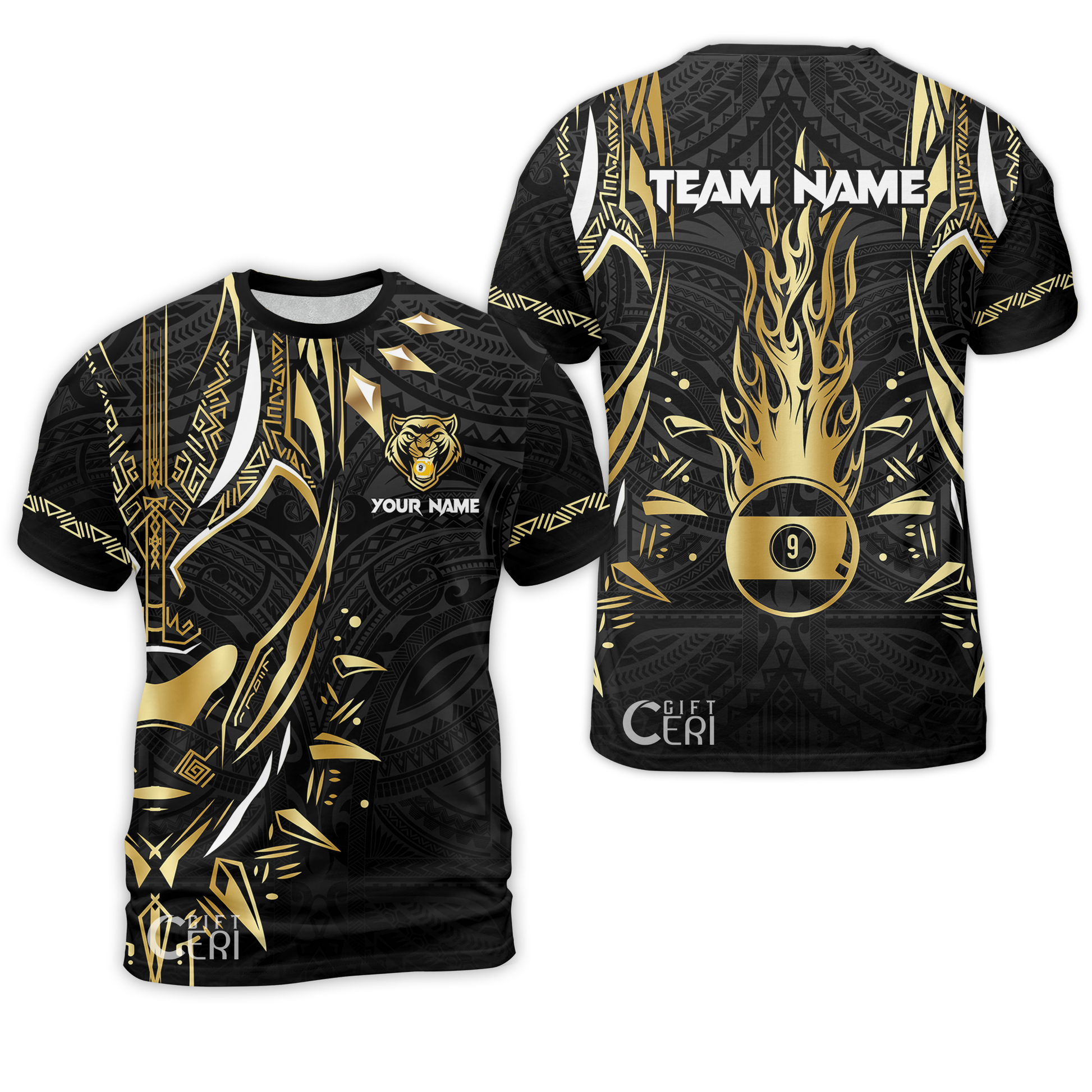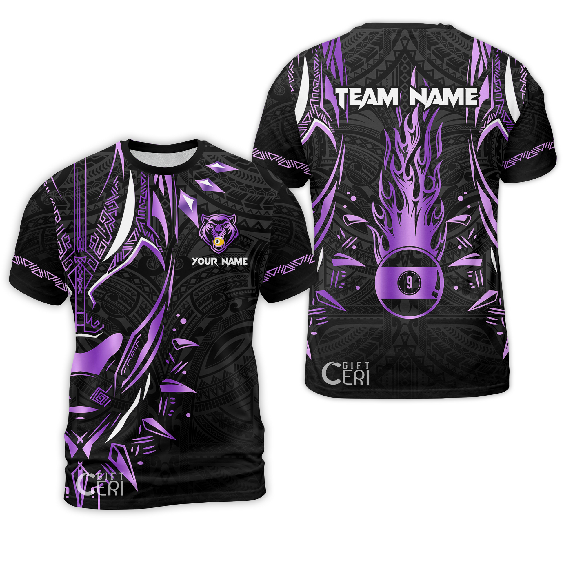 Customized Billiards T-Shirt, Panther Forever Flaming 9 Ball Personalized Jersey Gift For Billiard Players