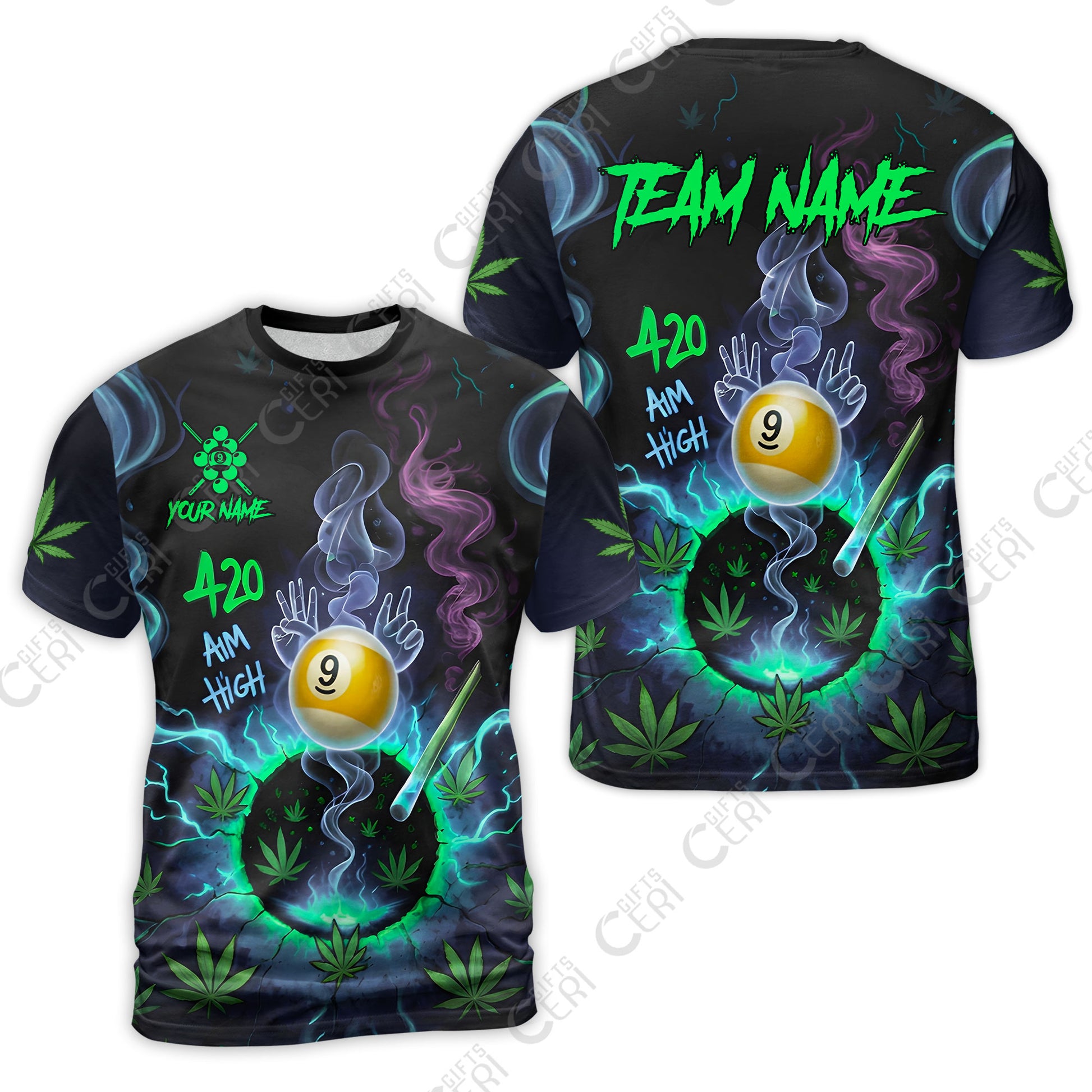 Customized Billiards T-Shirt, Personalized 420 Aim High 9 Ball Pool Team Jersey Gift For Billiard Players