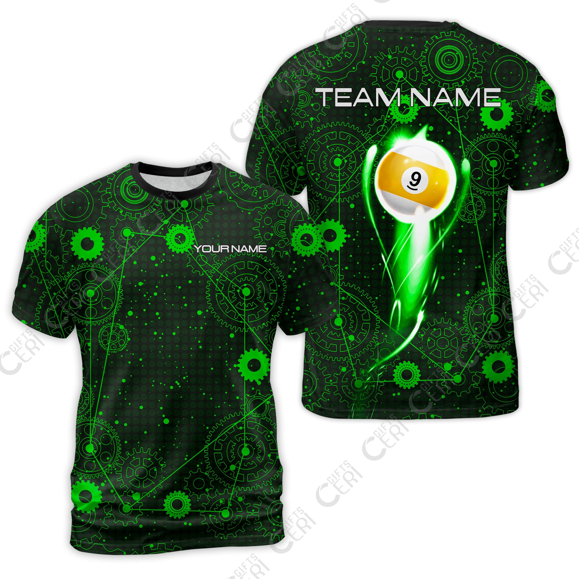 Customized Billiards T-Shirt, Personalized Billiard 9 Ball Lighting Gear Pattern Jersey Gift For Billiard Players