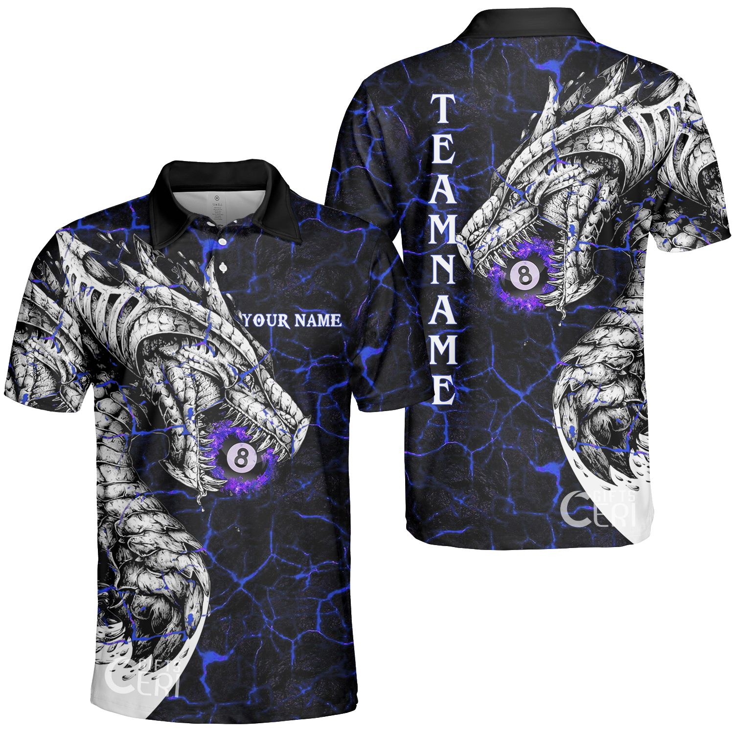 Customized Billiards Unisex Polo Shirt, Magma Pattern And Dragon 8 Ball Jersey
