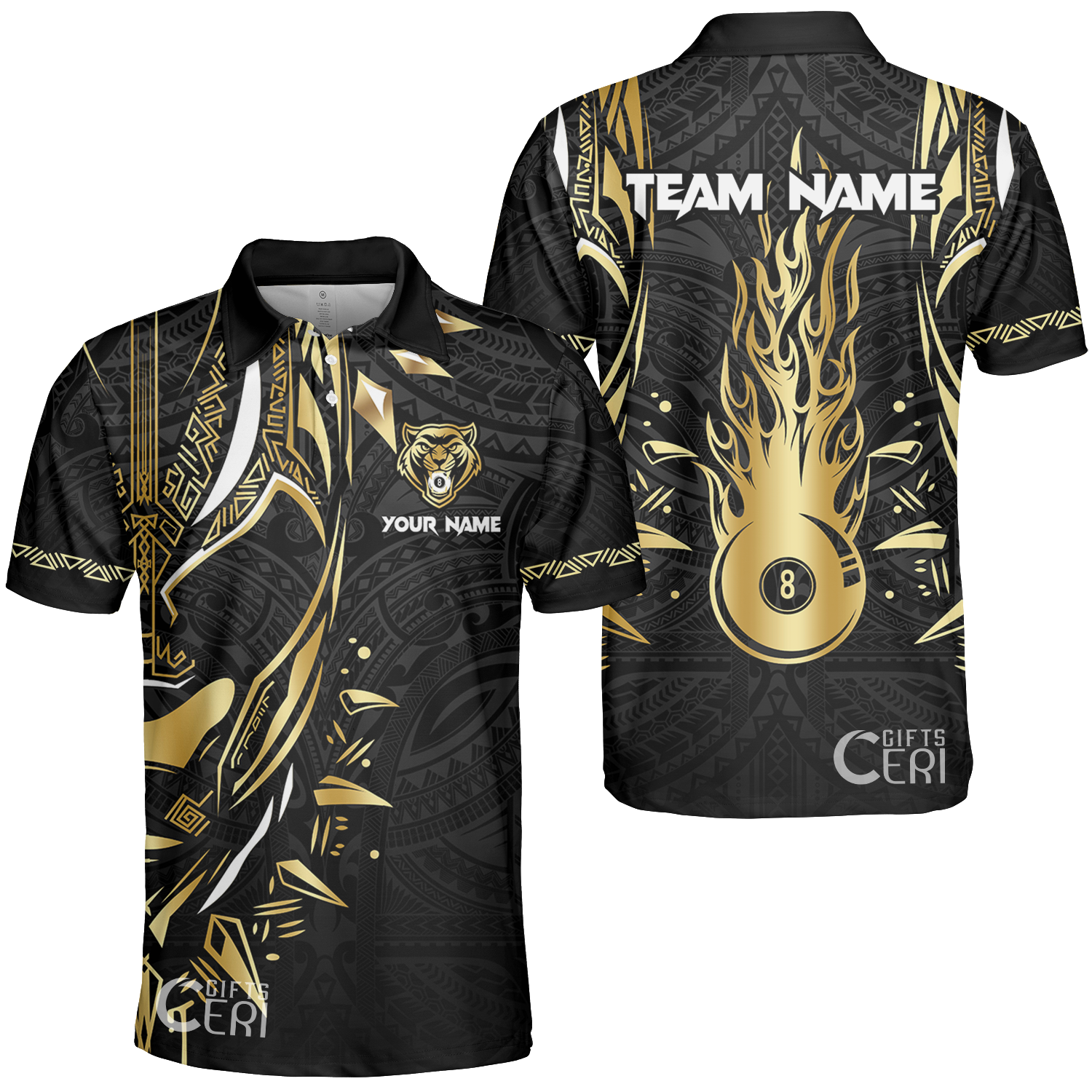 Customized Billiards Unisex Polo Shirt, Panther Forever Flaming 8 Ball Personalized Jersey Gift For Billiard Players