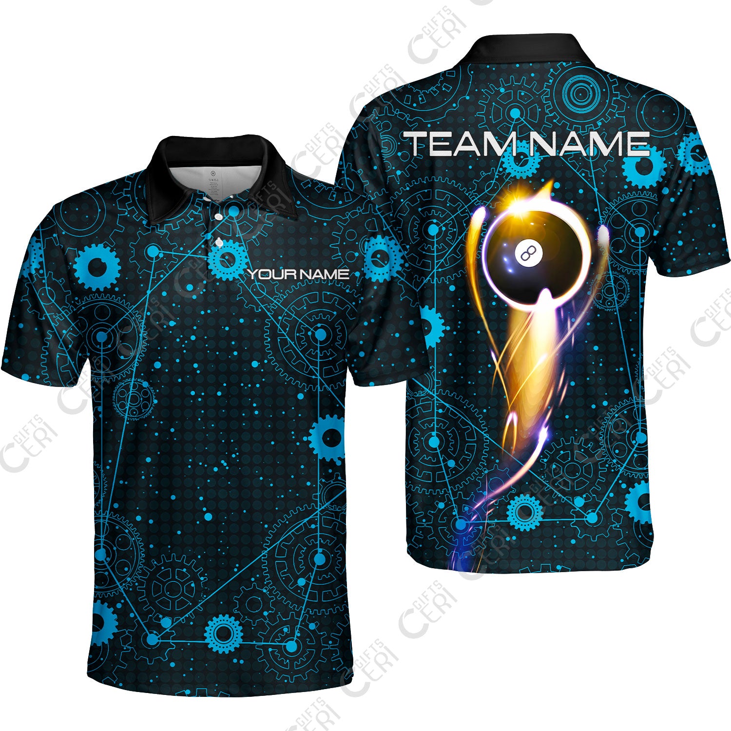 Customized Billiards Unisex Polo Shirt, Personalized 8 Ball Lighting Gear Pattern Jersey Gift For Billiard Players