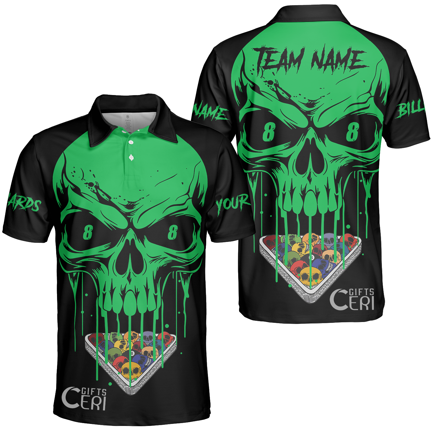 Customized Billiards Unisex Polo Shirt, Personalized Skull 8 Ball Jersey Gift For Billiard Players