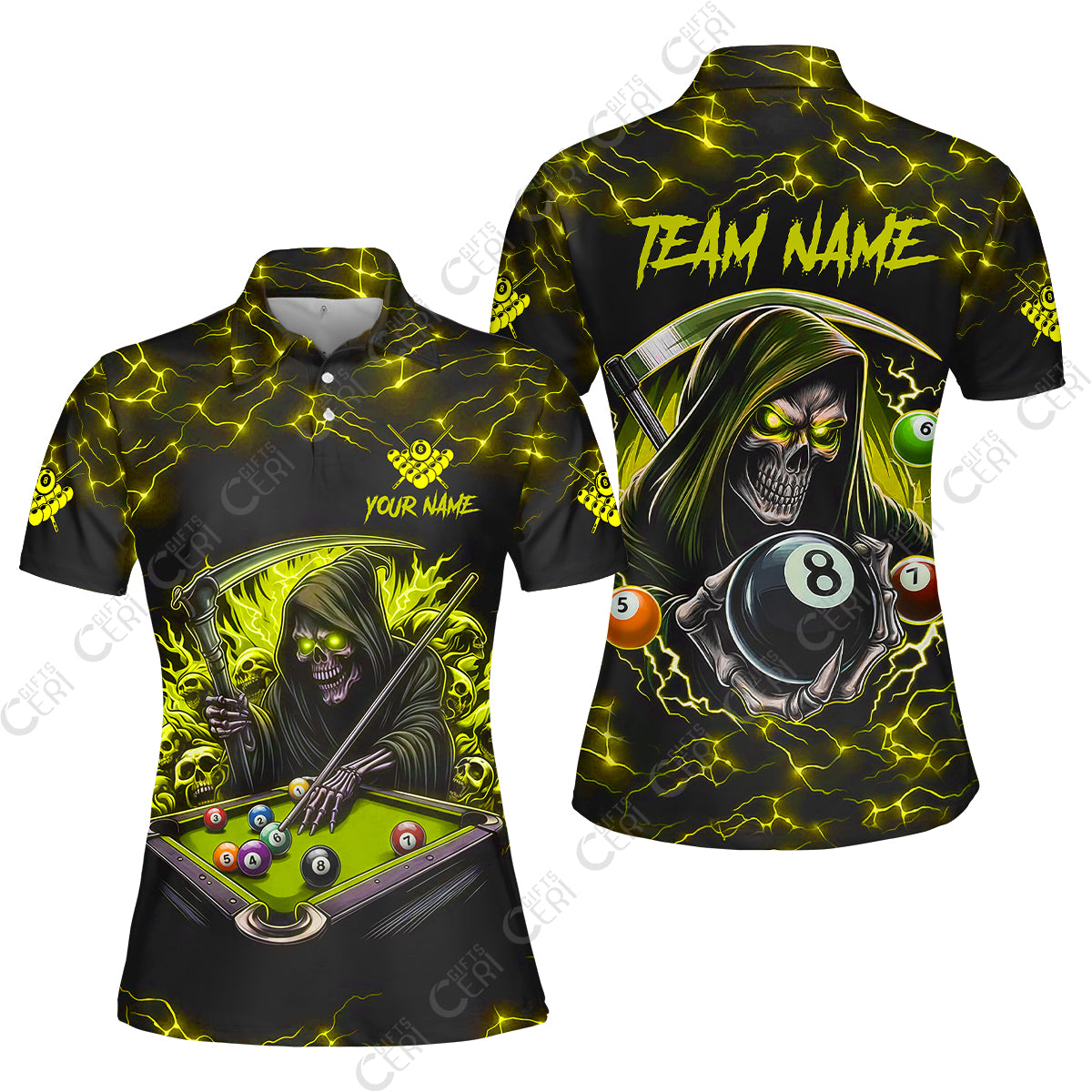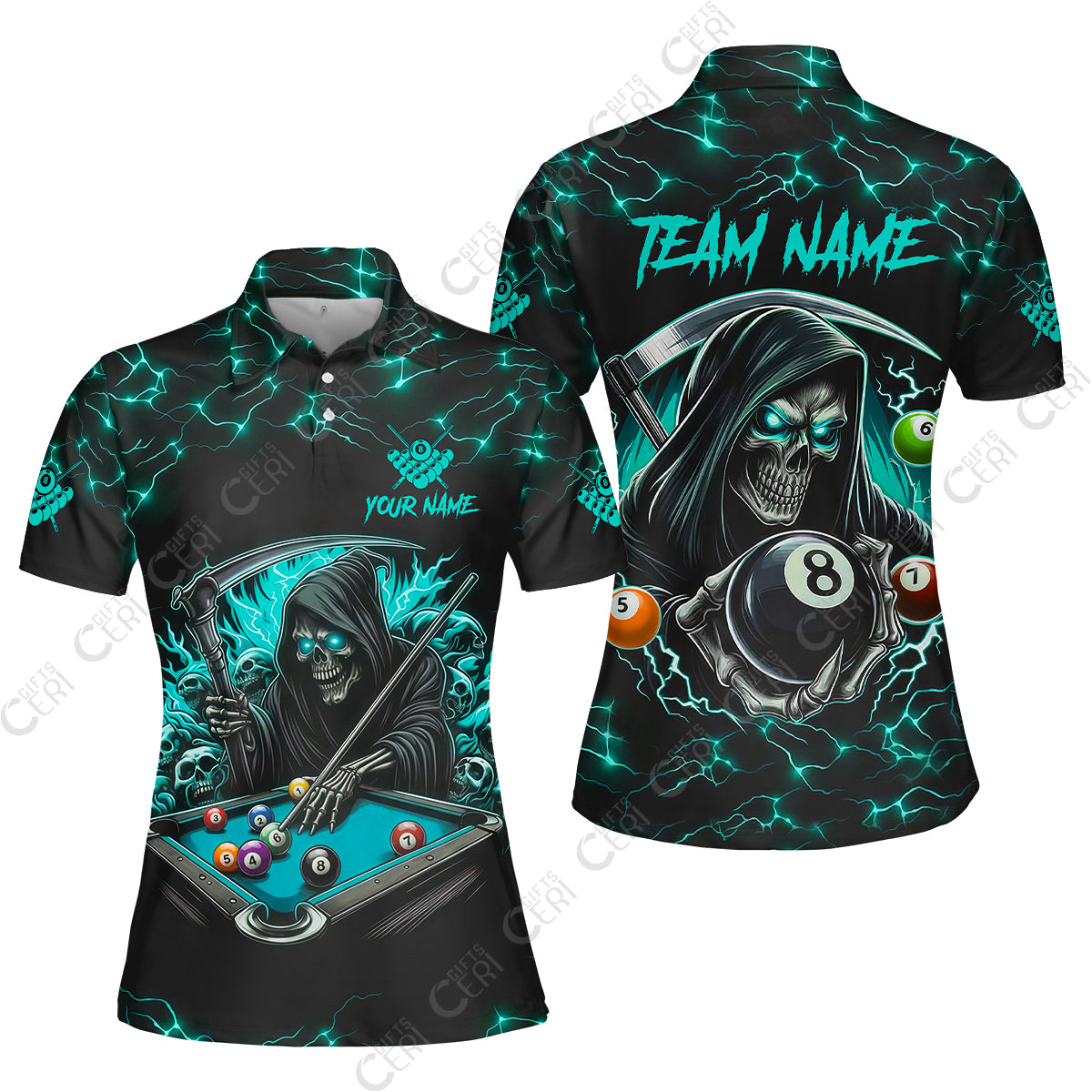 Customized Billiards Women Polo Shirt, Personalized Billiard Death Skeleton 8 Ball Jersey Gift For Billiard Players