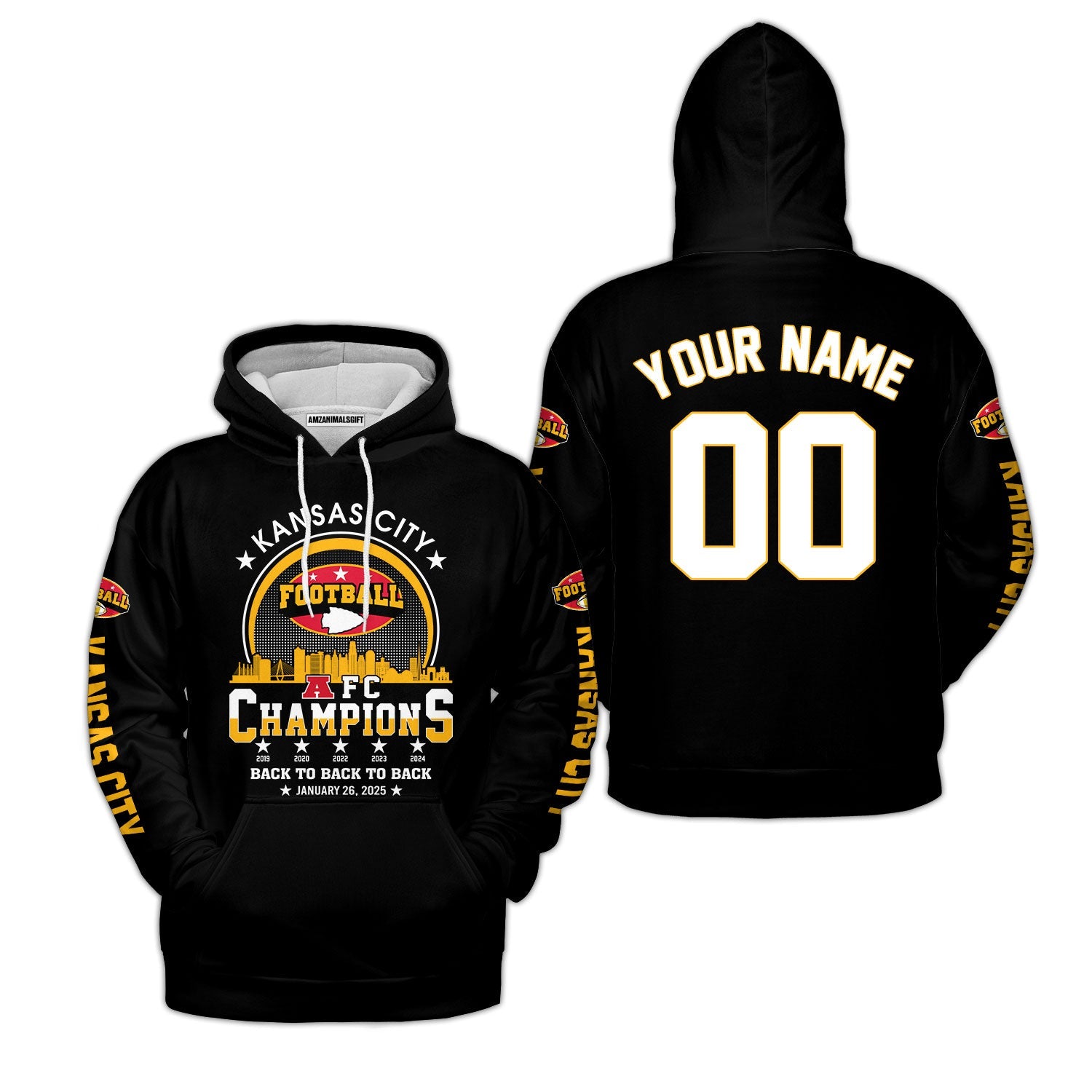Customized Kansas City Football 2024-2025 AFC Champions 2 Sided Sweatshirt, American Football Champs Outfit For Kansas City Football Fans - AOP
