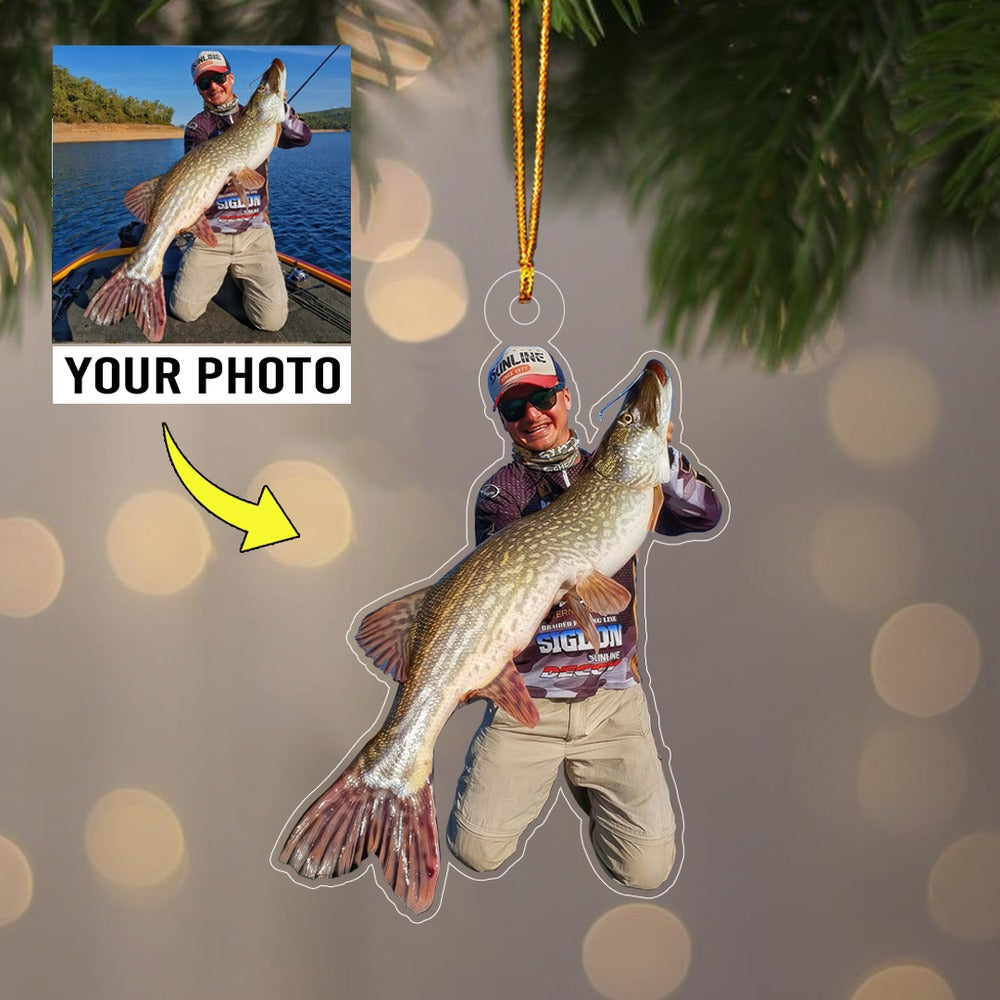 Customized Fishing Photo Acrylic Ornament, Christmas Gift For Fishing Lovers, Fisherman