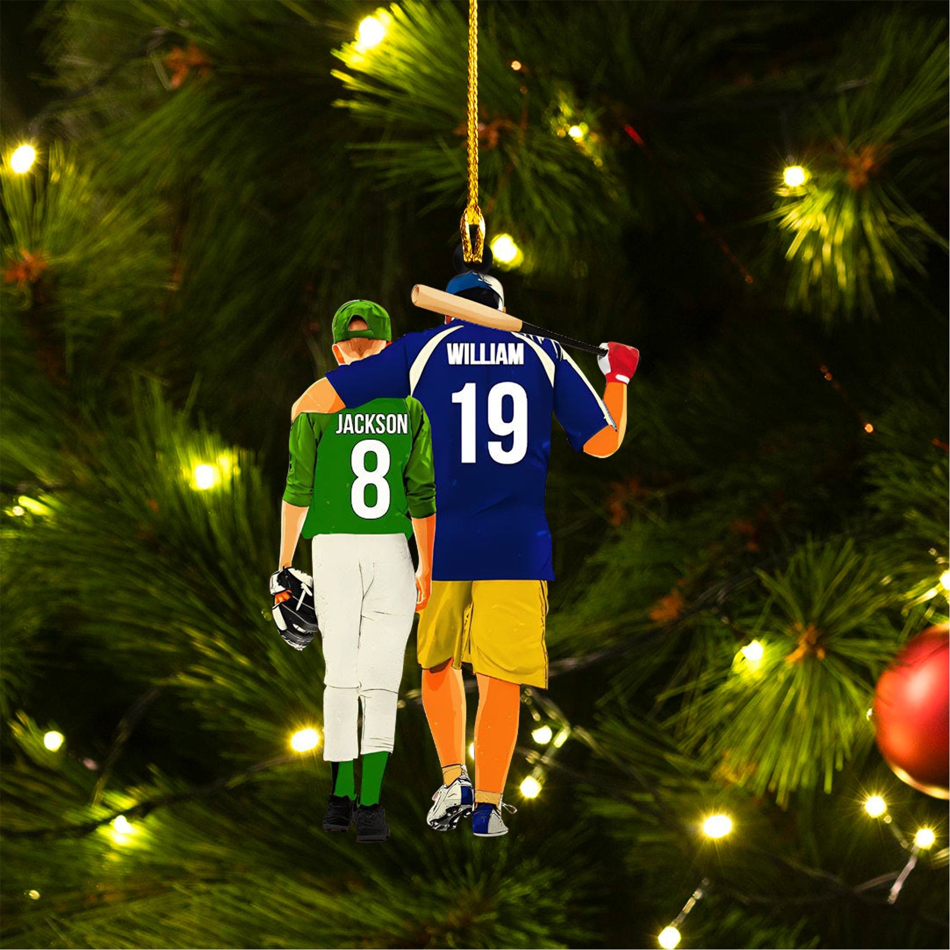 Personalized Dad And Son, Coach And Boys Baseball Players Acrylic Ornament, Christmas Ornament Gift For Son And Dad, Family