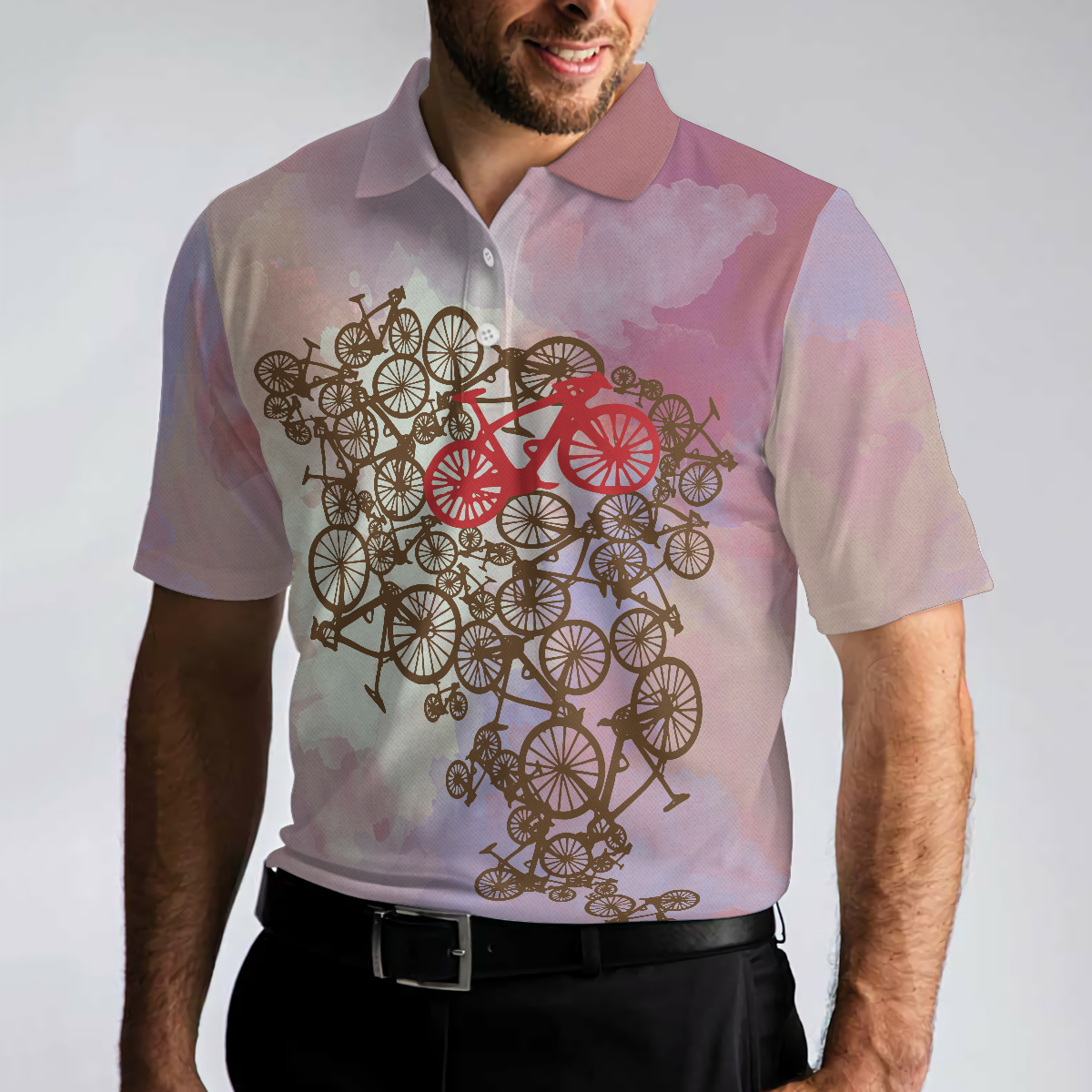 Cycling Polo Shirt, Tie Dye Pink Cycling Shirt For Bikers, Best Cycling Themed Polo Shirt For Adults