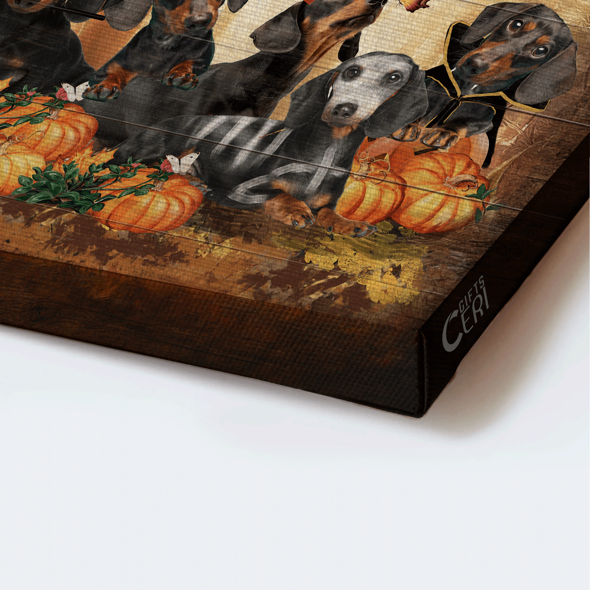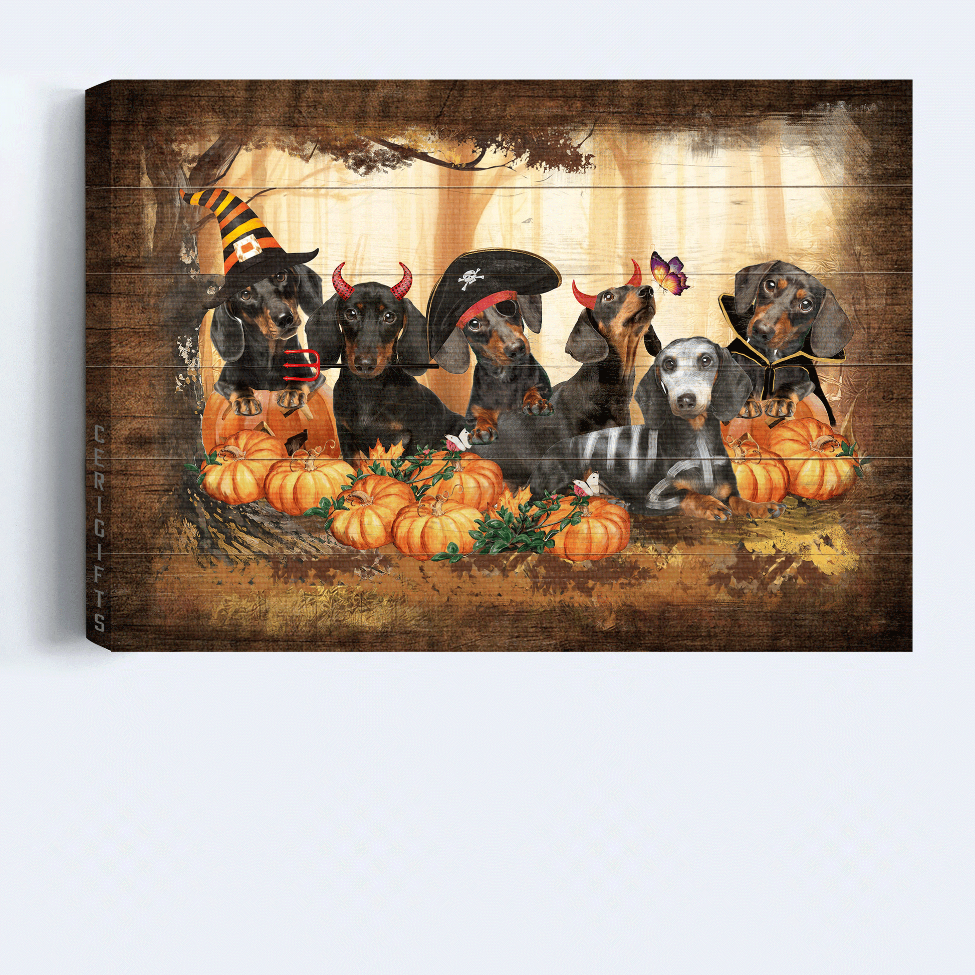 Dachshund Landscape Canvas- Dachshunds, Pumpkin, Halloween costumes canvas- Gift for Dachshund lover.