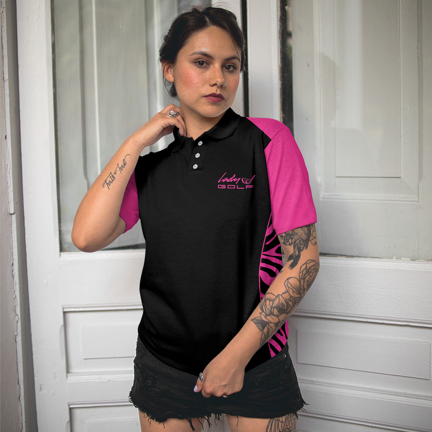 Dark Pink Zebra Pattern Thinning Layout For Lady Golfer Golf Short Sleeve Women Polo Shirt, Best Shirt For Ladies, Goft Gift For Women