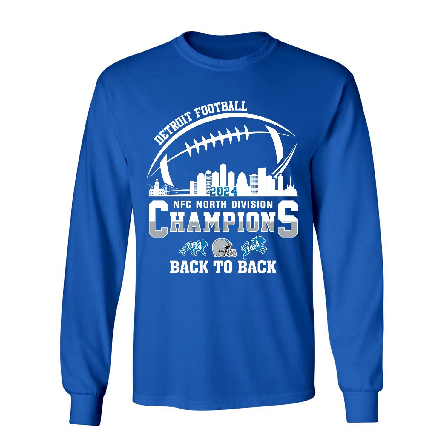 Detroit Football 2024 NFC North Division Champions Back To Back Long Sleeve Shirt, NFC North Champs Detroit Apparel For Fans