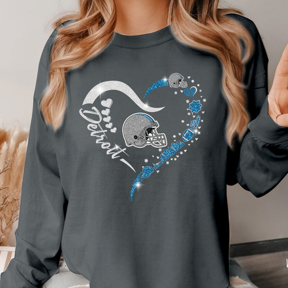 Detroit Football In My Heart T Shirts, Hoodie, Sweatshirt, Long Sleeve For Men & Women, Detroit Lover