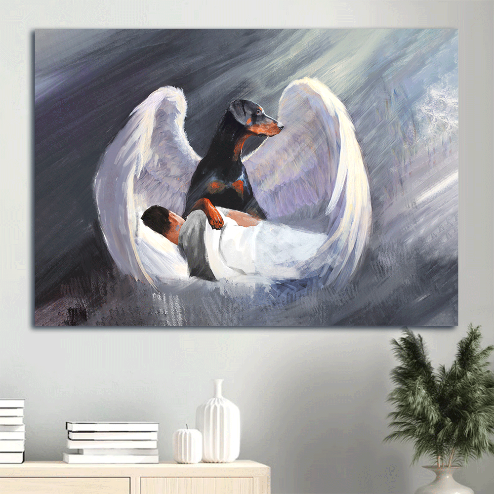 Doberman Landscape Canvas- Sleeping man, Doberman, Beautiful Wings, I'll protect you- Gift for dog lover - Dog Landscape Canvas Prints, Wall Art.