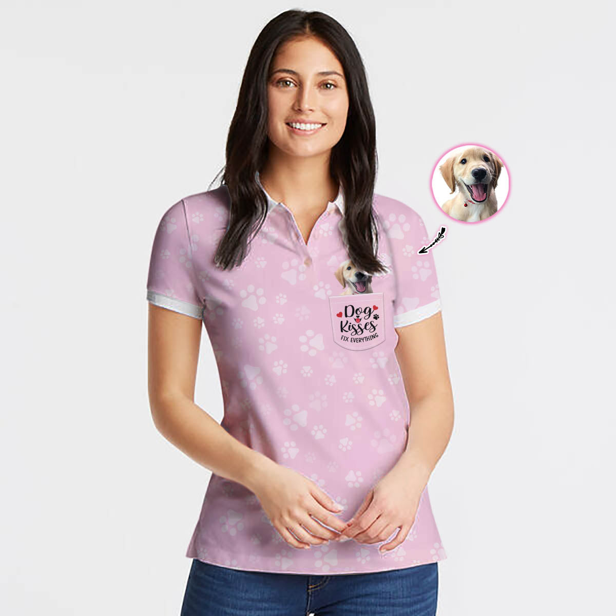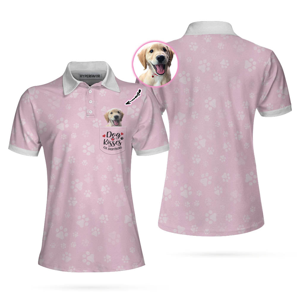 Dog Kisses Fix Everything Custom Short Sleeve Women Polo Shirt, Personalized Pink Polo Shirt For Dog Lovers, Best Gift For Dog Lovers, Gift For Women