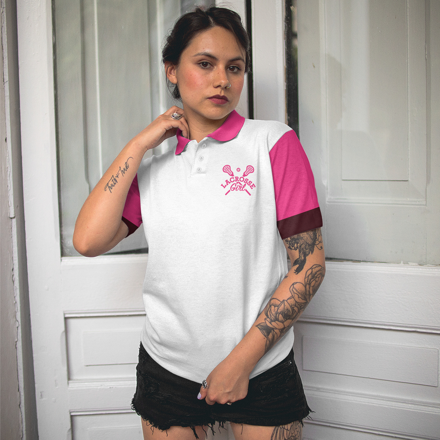 Don't Let Skirt Fool You Lacrosse Short Sleeve Women Polo Shirt, White And Pink Lacrosse Shirt For Ladies, Polo Shirt For Women, Gift For Women Golfers