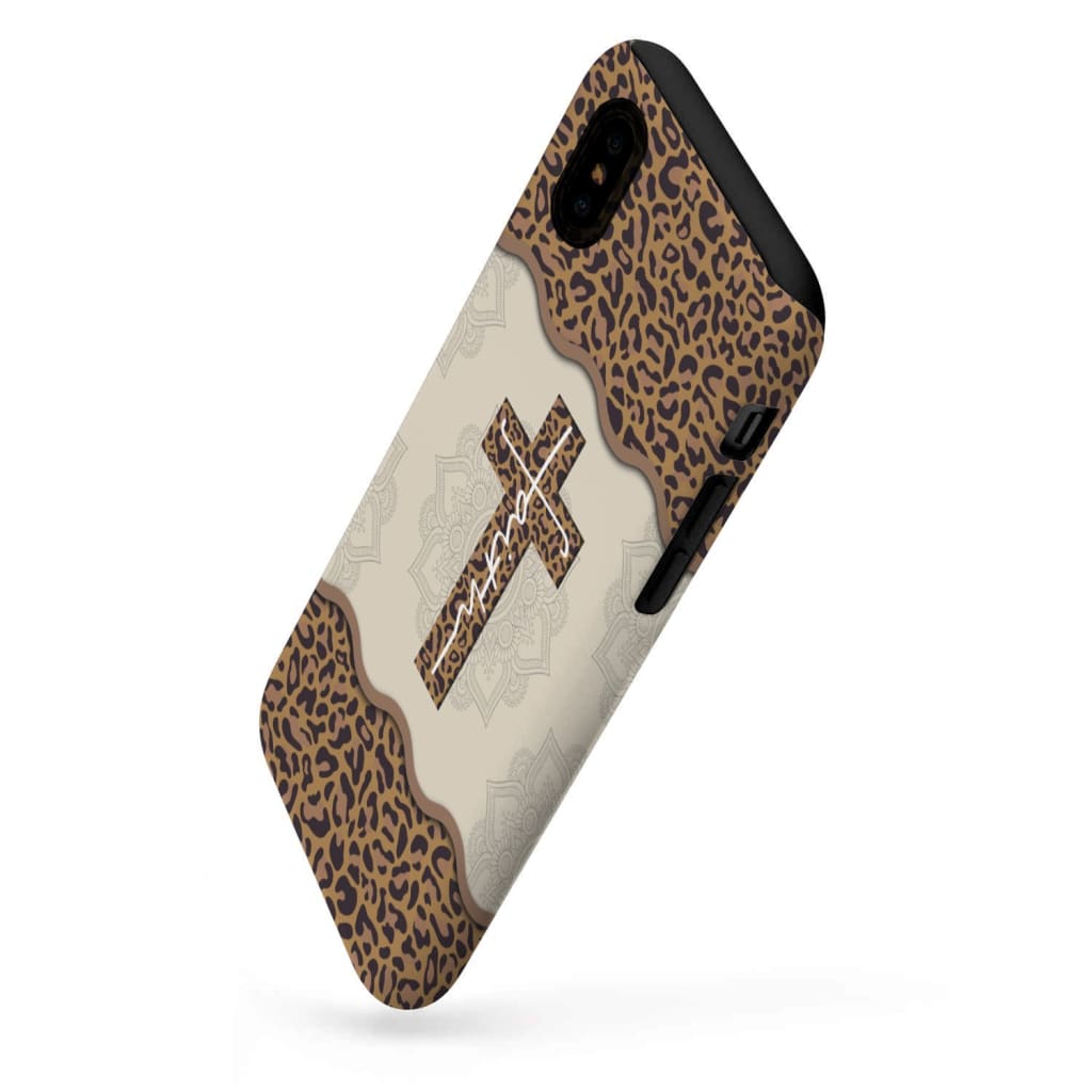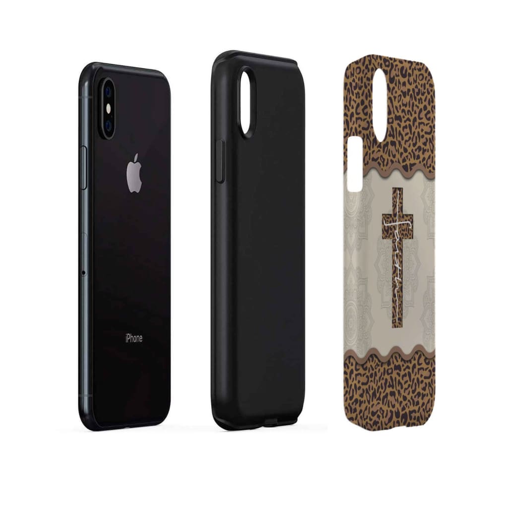 Faith Cross Leopard Tough Phone Cases, Inspirational Phone Cases, Christian Phone Case, Gift For Friend, Family, Mother's Day, Father's Day