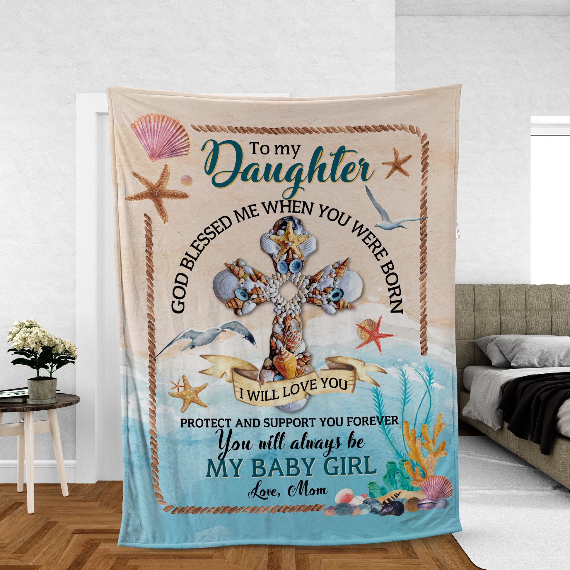 Family Blanket, Daughter And Mom Blanket, Gifts For Daughter From Mom, Mom To Daughter Blanket - Seashell Cross, God Blessed Me When You Were Born
