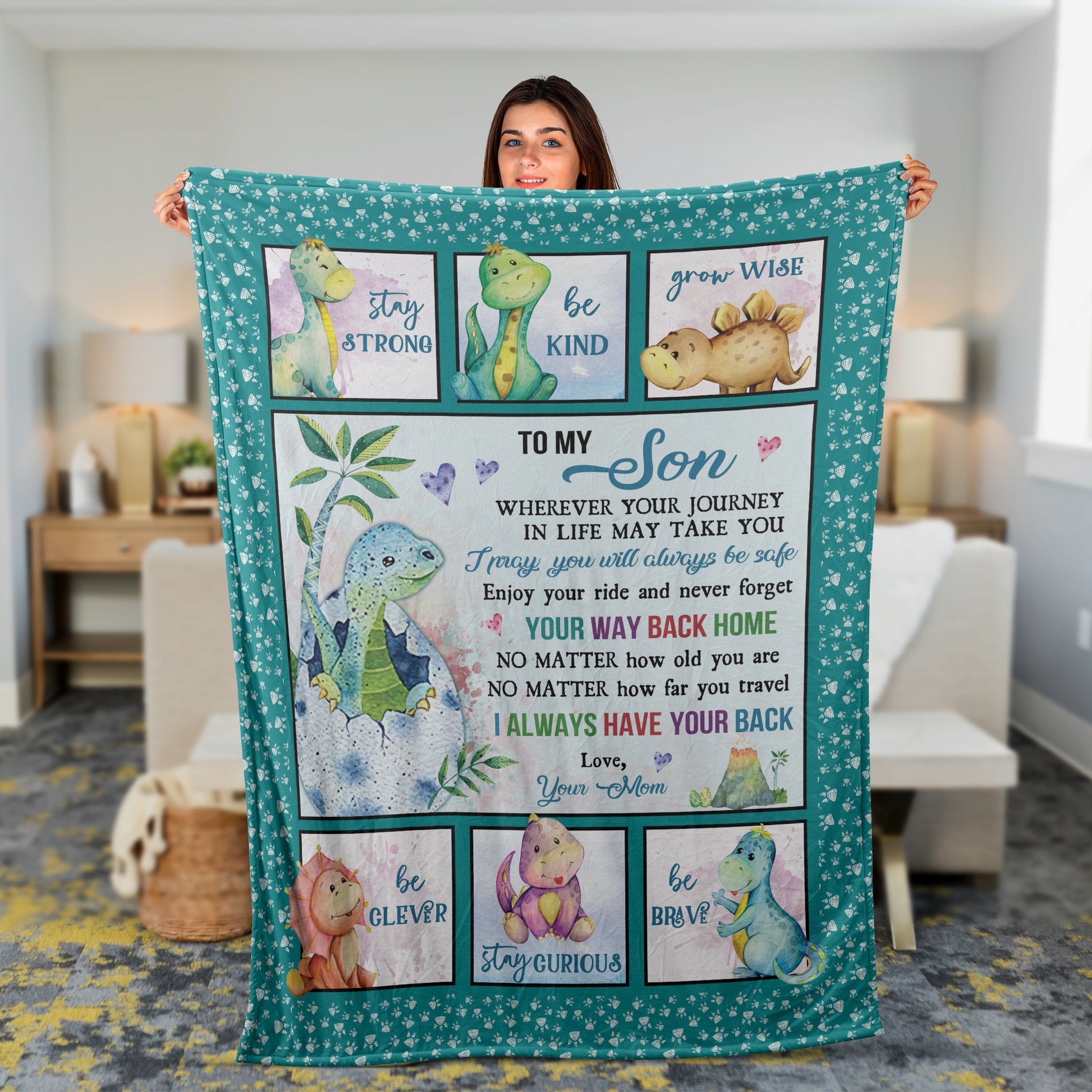Family Blanket, Son And Mom Blanket - Gifts For Son From Mom - Mom To Son Blanket, Baby Dinosaur, I Always Have Your Back
