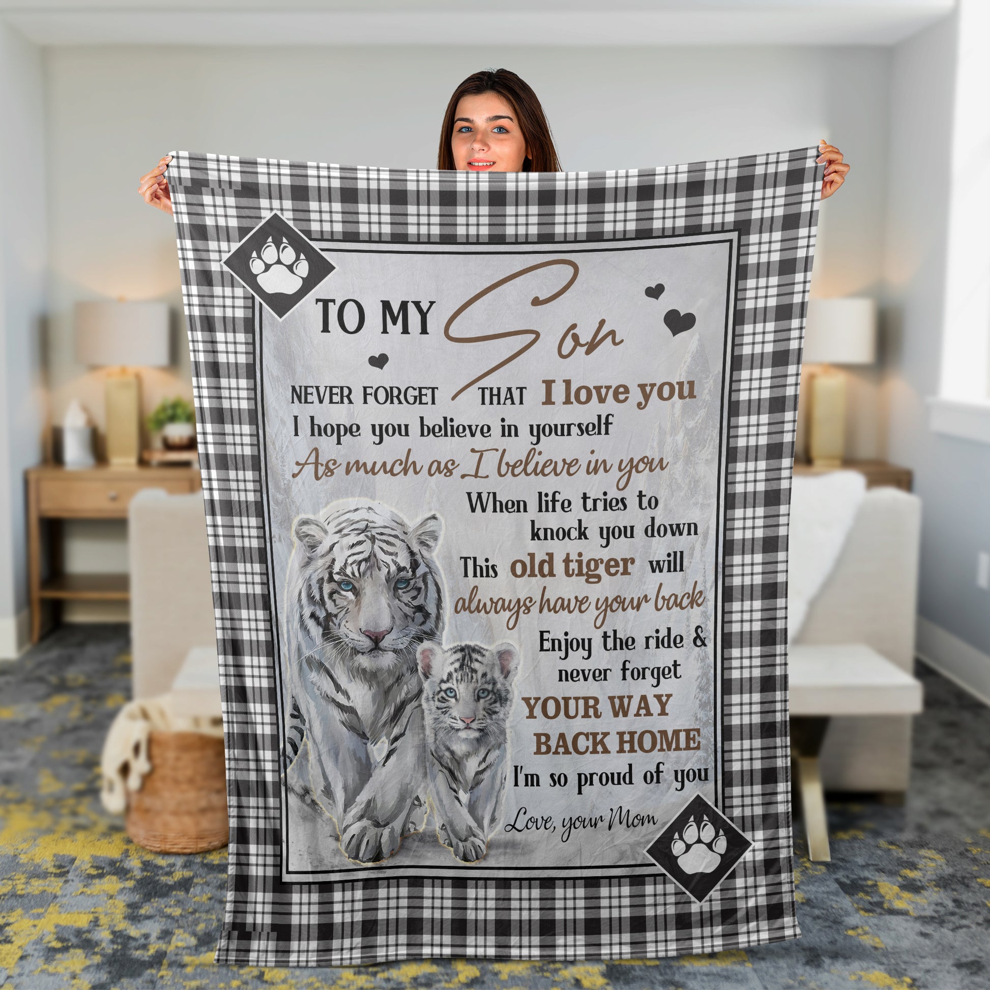 Family Blanket, Son And Mom Blanket - Gifts For Son From Mom - Mom To Son Blanket, Beautiful White Tiger And Her Cup