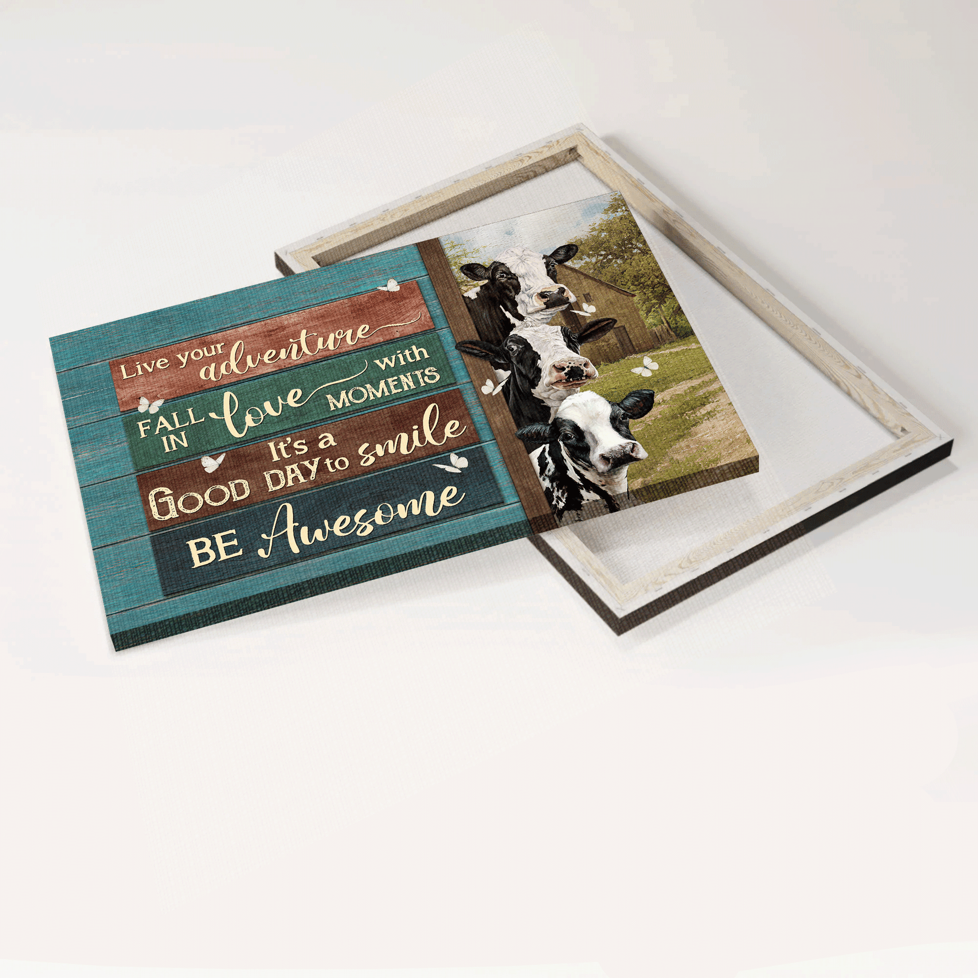 Family Landscape Canvas- Amazing Dairy Cow, Green Meadow, Jesus Landscape Canvas- Gift For Members Family- It's A Good Day To Smile.
