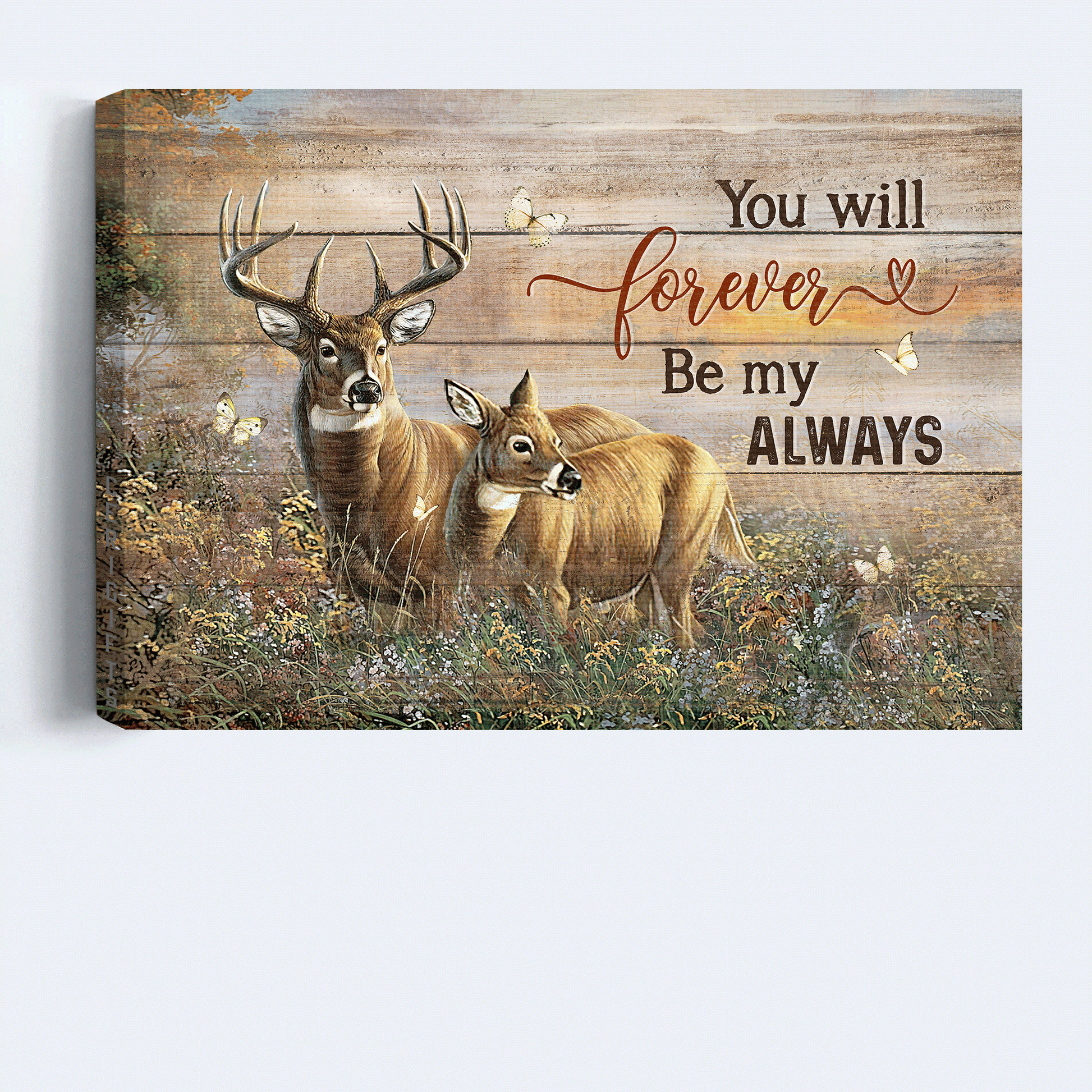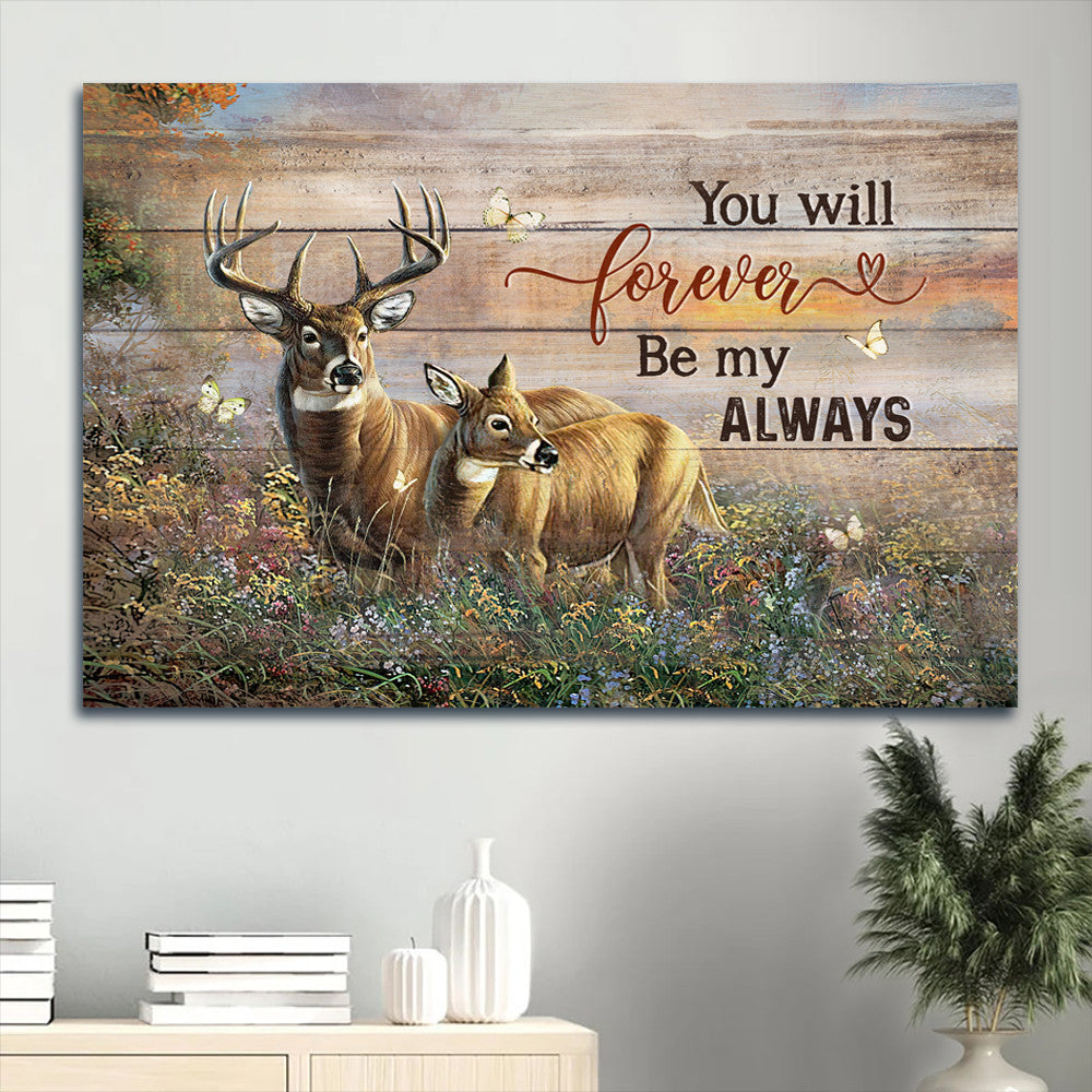 Family Landscape Canvas- Amazing Deer, Pretty Flower Field Landscape Canvas- Gift For Members Family, Couple-You Will Forever Be My Always.