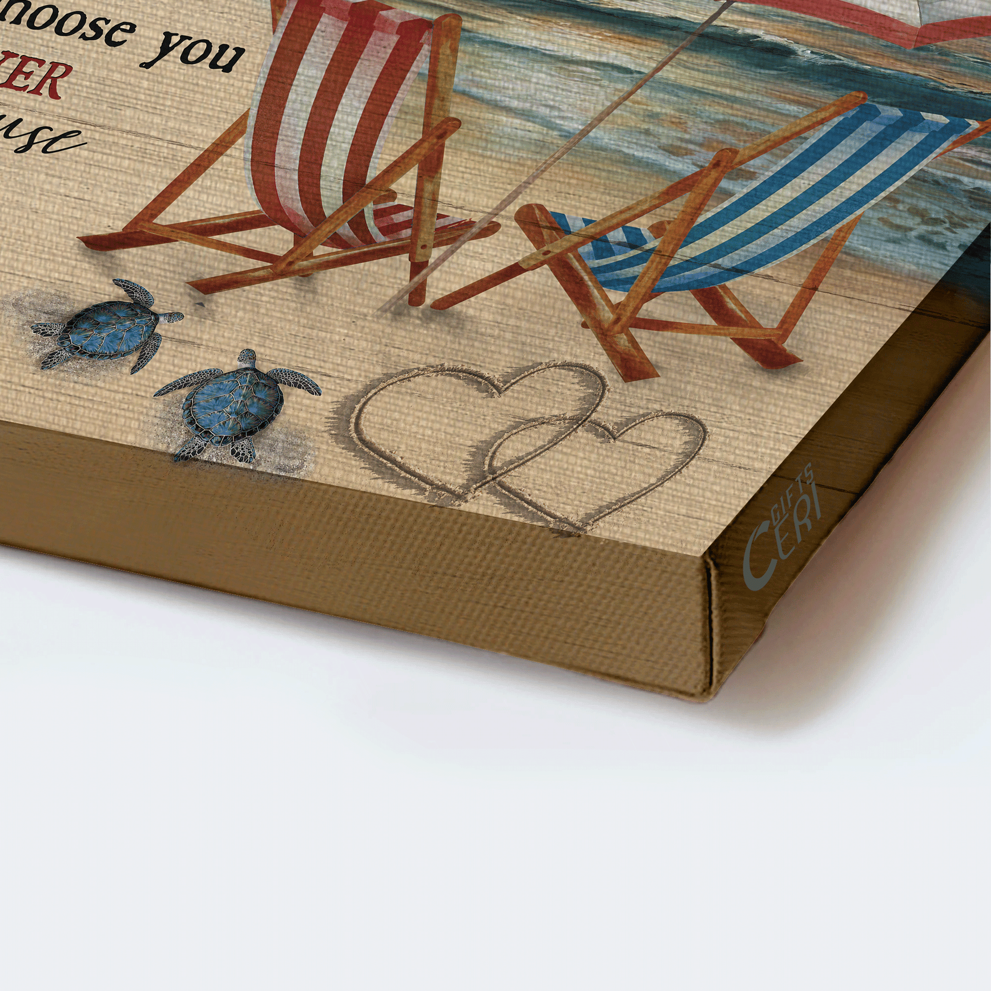 Family Landscape Canvas- Beach Scene, Beach Chairs, Sea Turtle, Heart Shape, Seagull Canvas- Gift For Members Family- I Choose You
