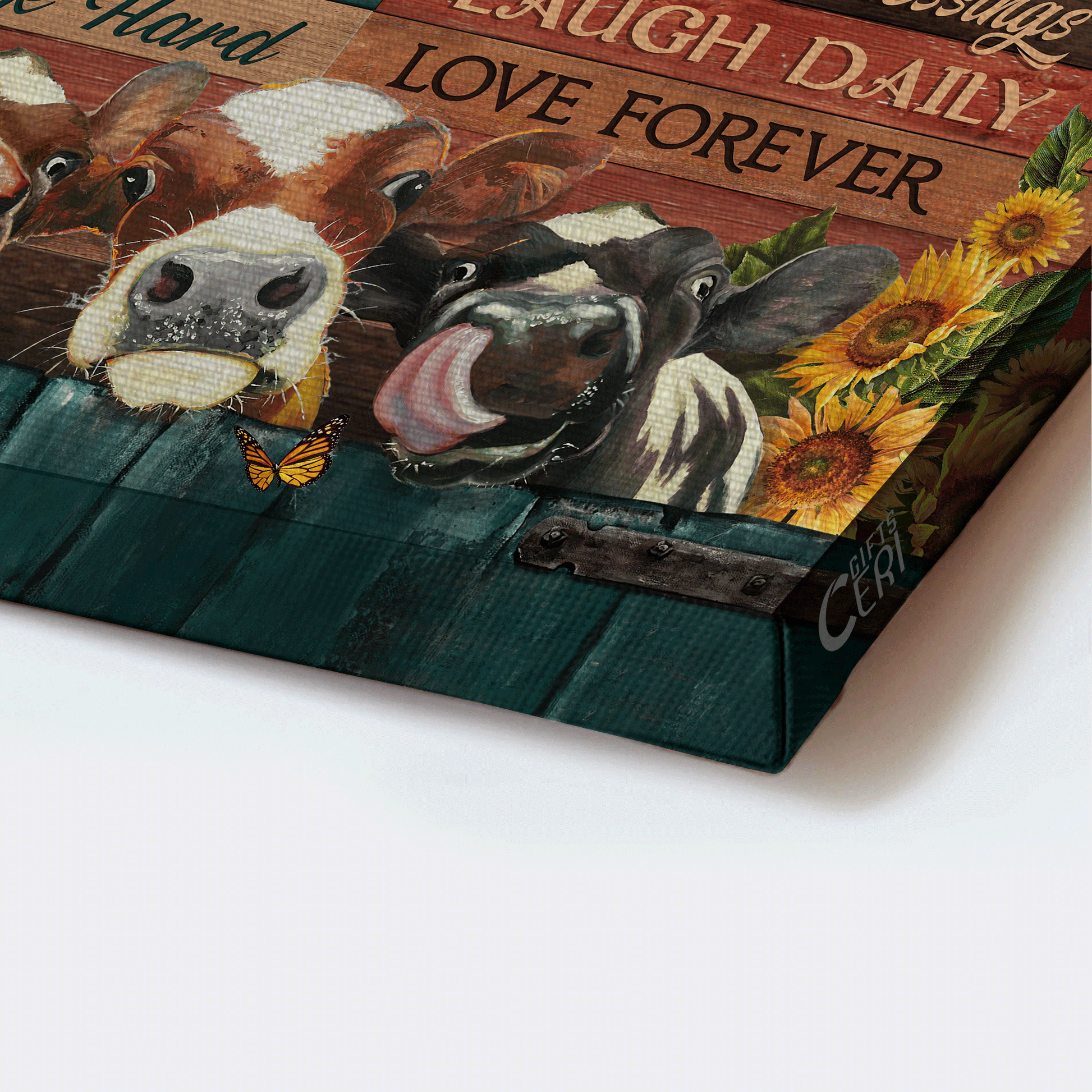 Family Landscape Canvas- Beautiful Dairy Cow, Sunflower Field, Orange Butterfly Canvas- Gift For Members Family- Family Rules