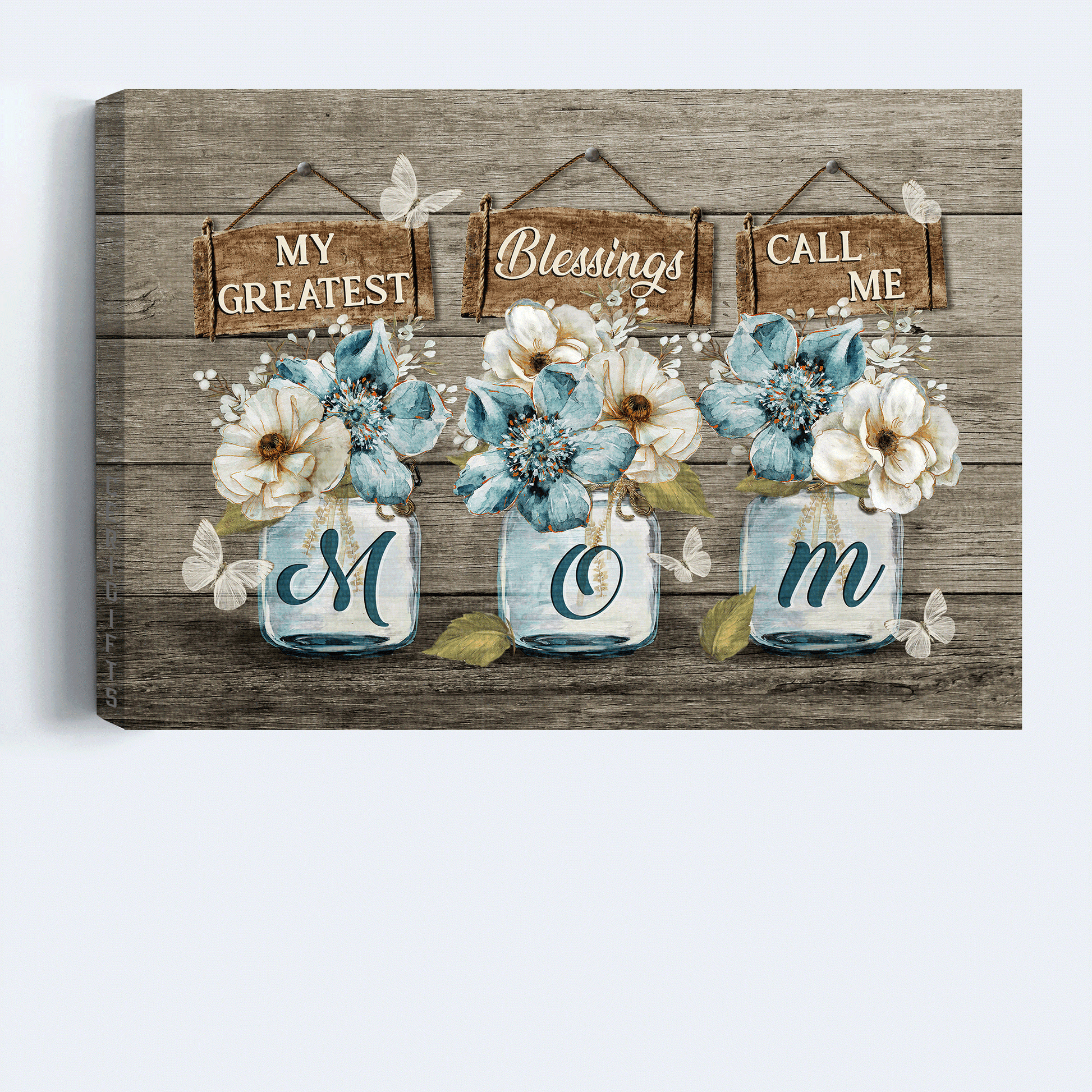 Family Landscape Canvas- Beautiful flower, Crystal butterfly canvas- Gift for members family- My greatest blessings call me Mom.