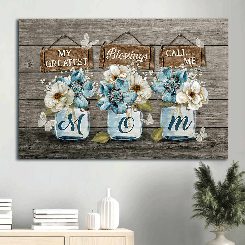 Family Landscape Canvas- Beautiful flower, Crystal butterfly canvas- Gift for members family- My greatest blessings call me Mom