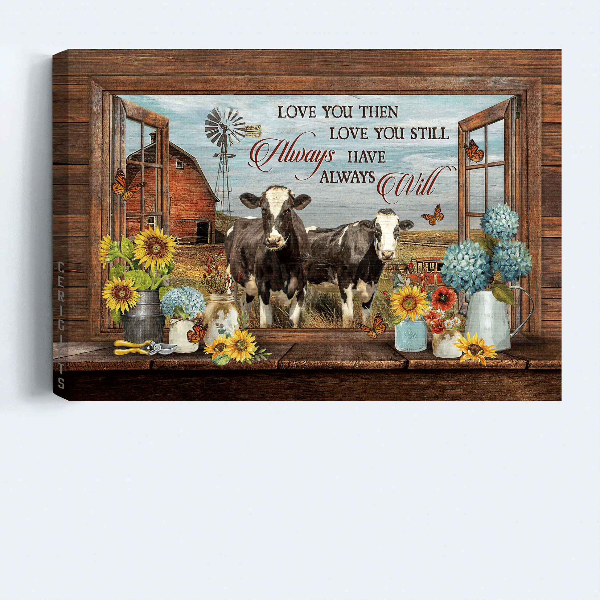 Family Landscape Canvas- Dairy cow, Peace farm, Flower vase canvas- Gift for members family- Love you then love you still