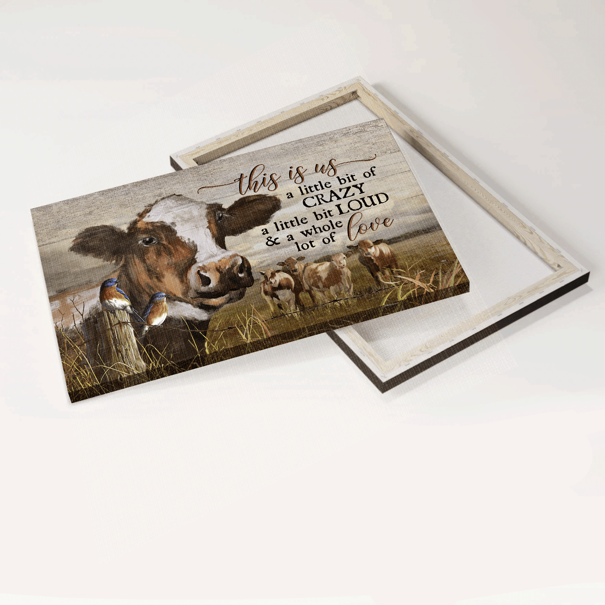 Family Landscape Canvas- Dairy cows, Blue bird, Farm animal, Grass field canvas- Gift for members family-This is us love.