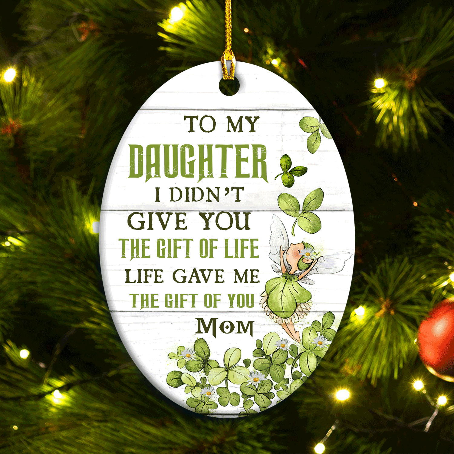 Family Oval Ceramic Ornament- Mom To Daughter, Clover Leaf, Daisy Flower Oval Ceramic Ornament- Gift For Daughter- Life Gave Me The Gift Of You.