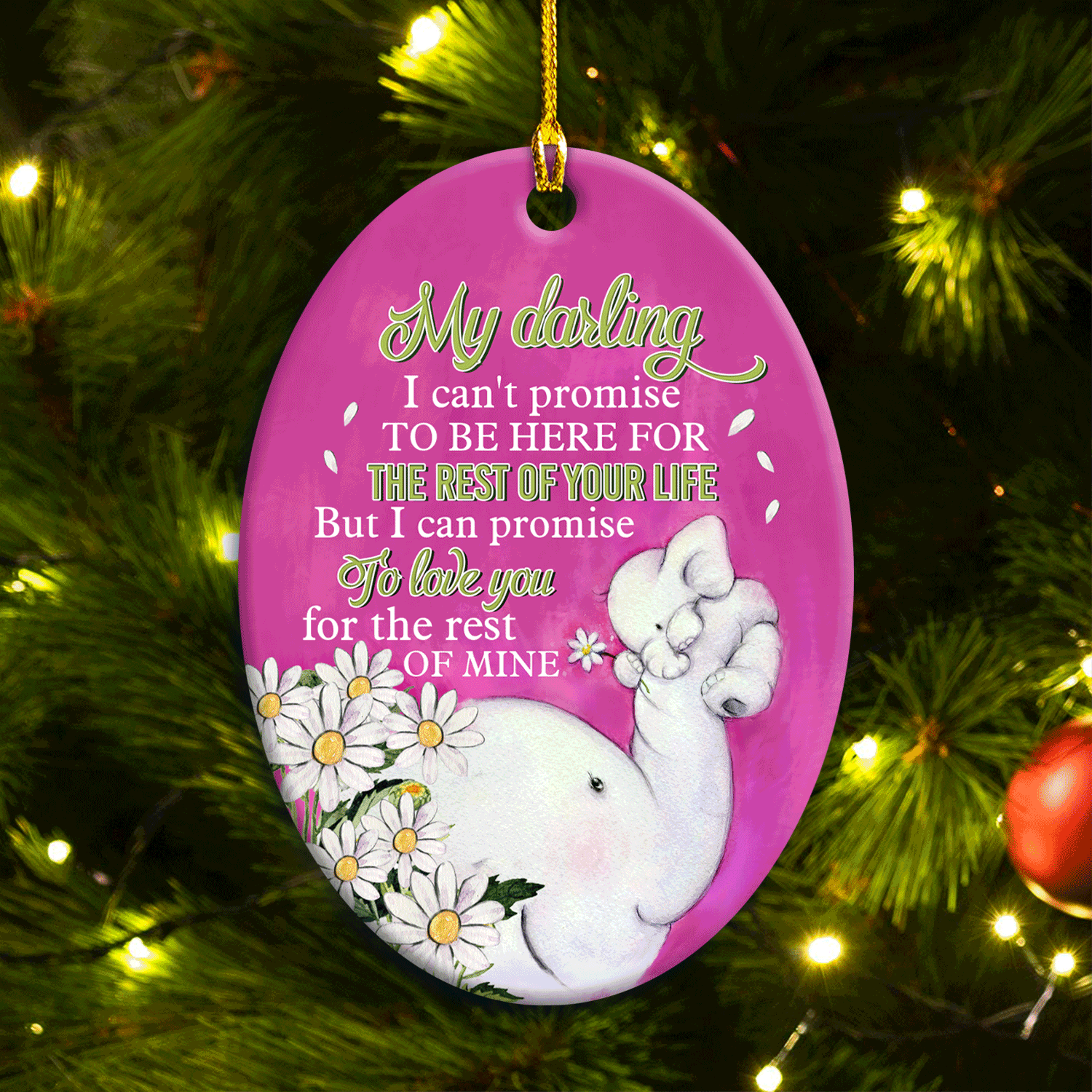 Family Oval Ceramic Ornament- Mom To Daughter, Elephant Oval Ceramic Ornament- Gift For Daughter- I Promise To Love You For The Rest Of My Life