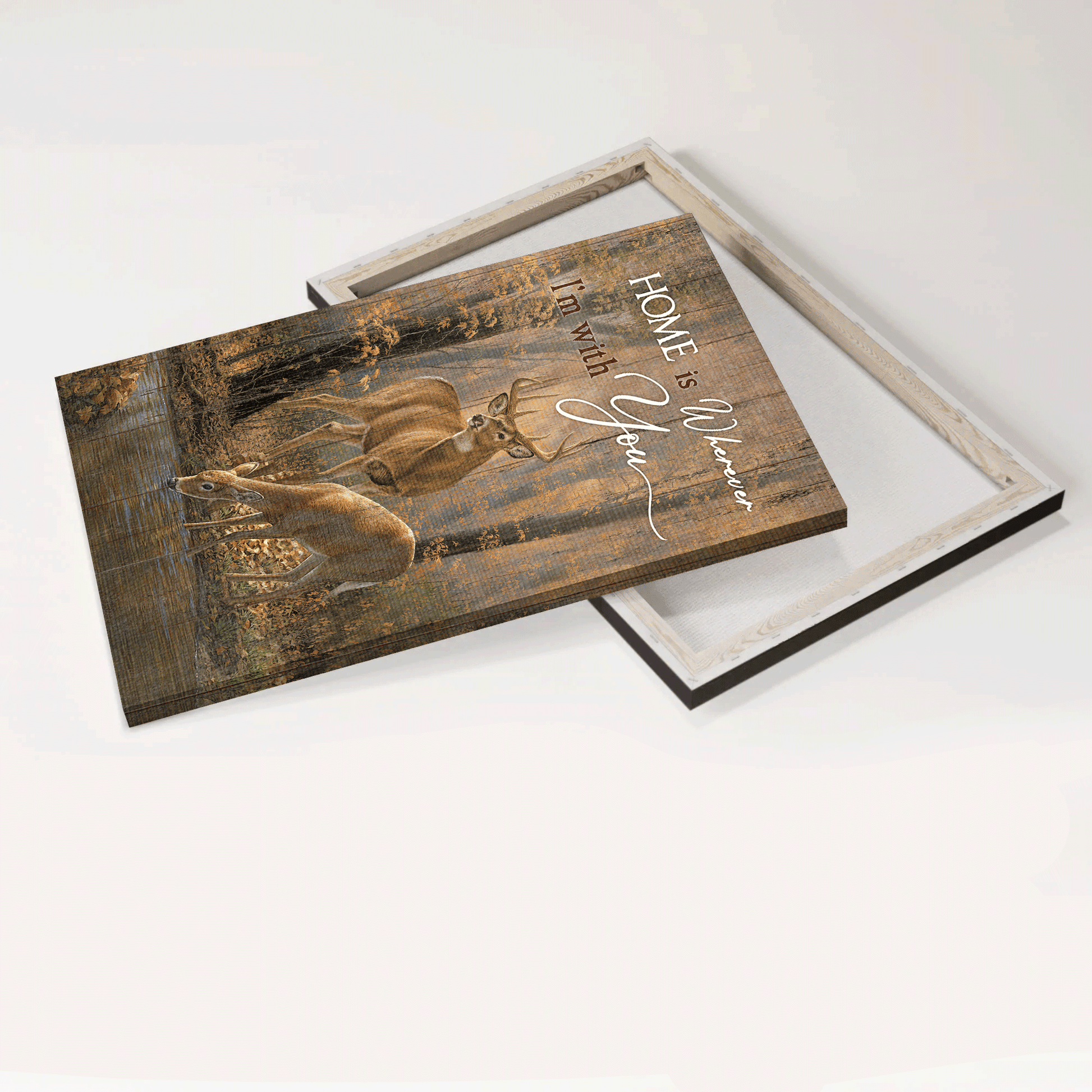 Family Portrait Canvas - Beautiful autumn forest, Deer drawing Portrait Canvas - Gift For Family Member - Home is wherever I'm with you