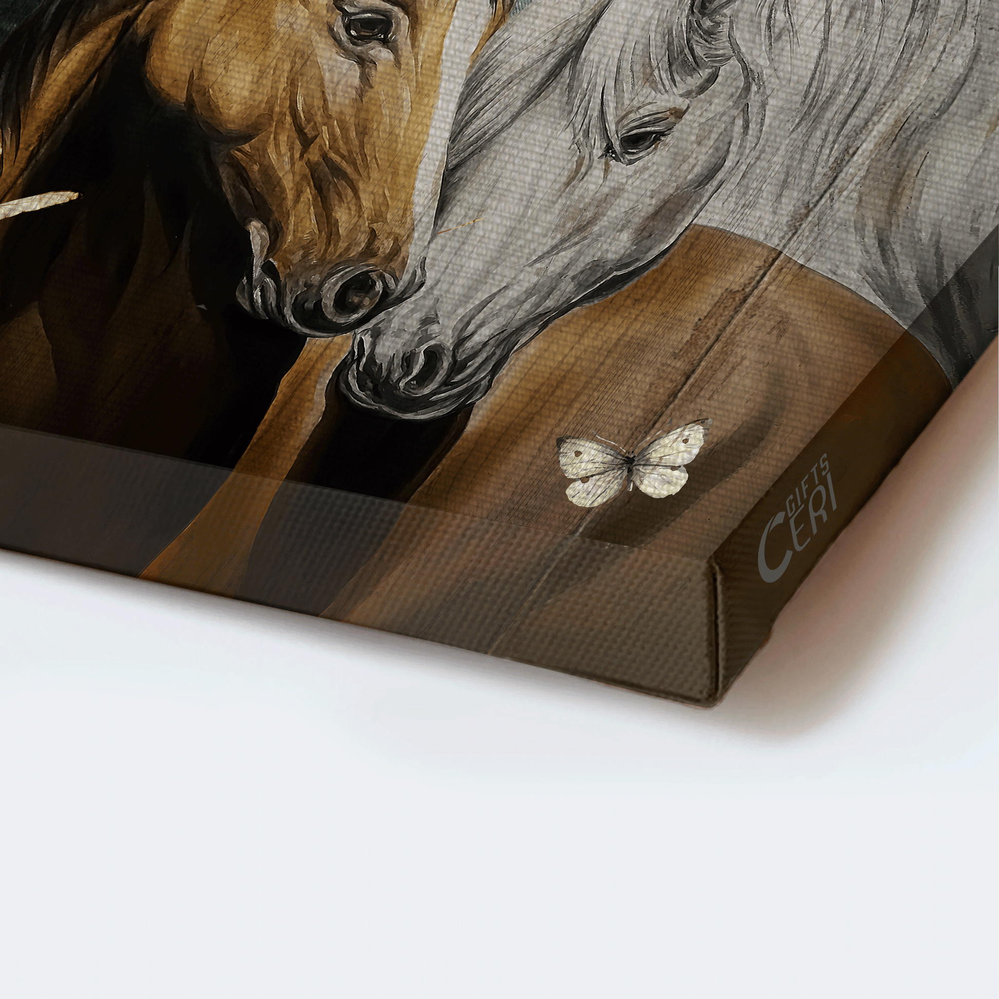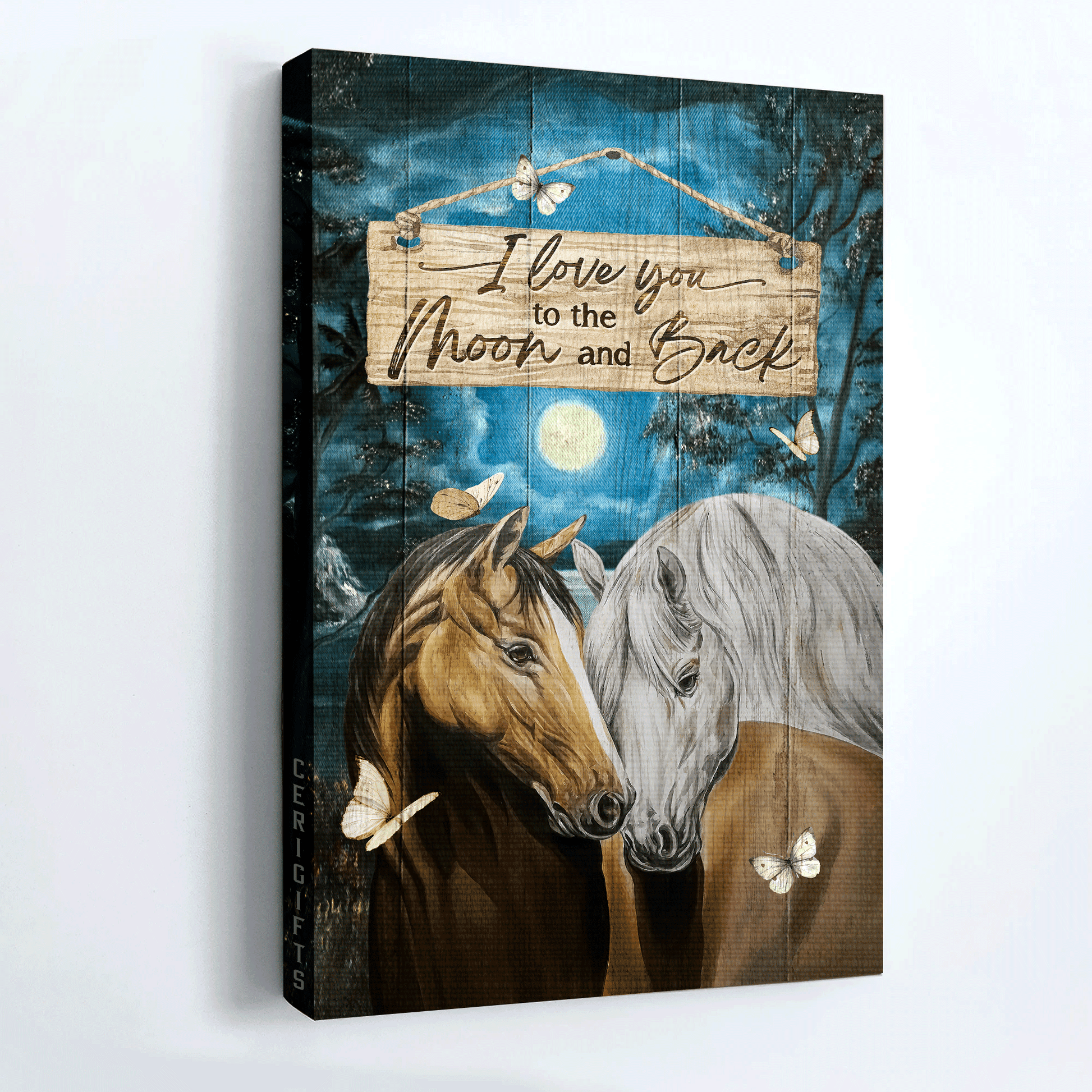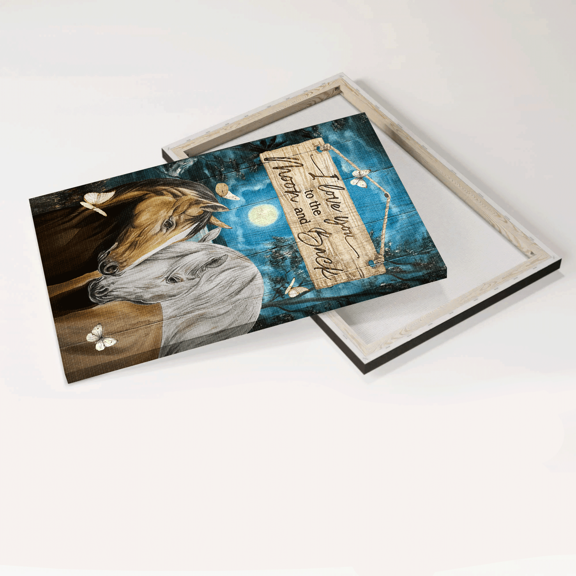 Add a hint of wonderlust to your walls with this Family Portrait Canvas- Brown and white horse, Moon night, White butterfly canvas- Gift for members family- I love you to the moon and back!
