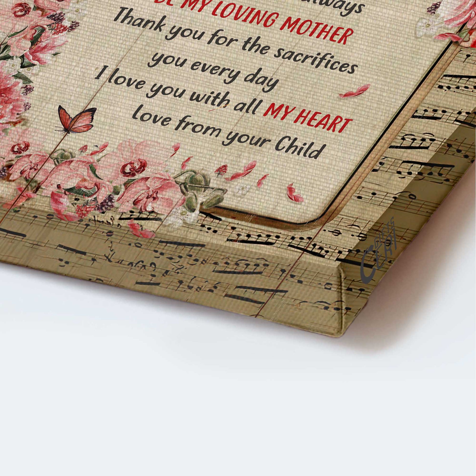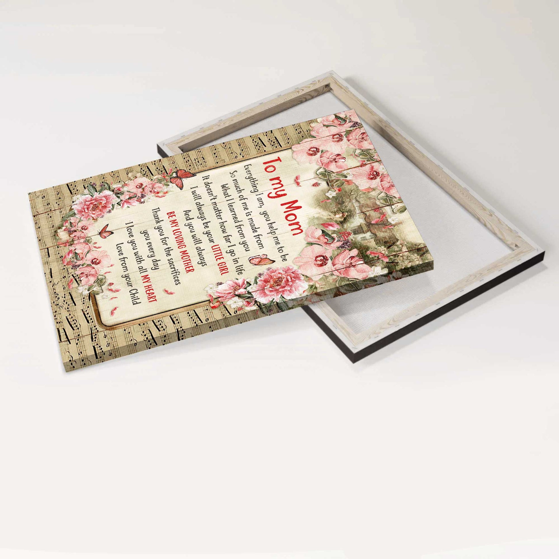 Family Portrait Canvas- To my mom canvas, Daughter to mom, Music sheet, Beautiful butterfly canvas- Gift for mom, mother- Be my loving mother