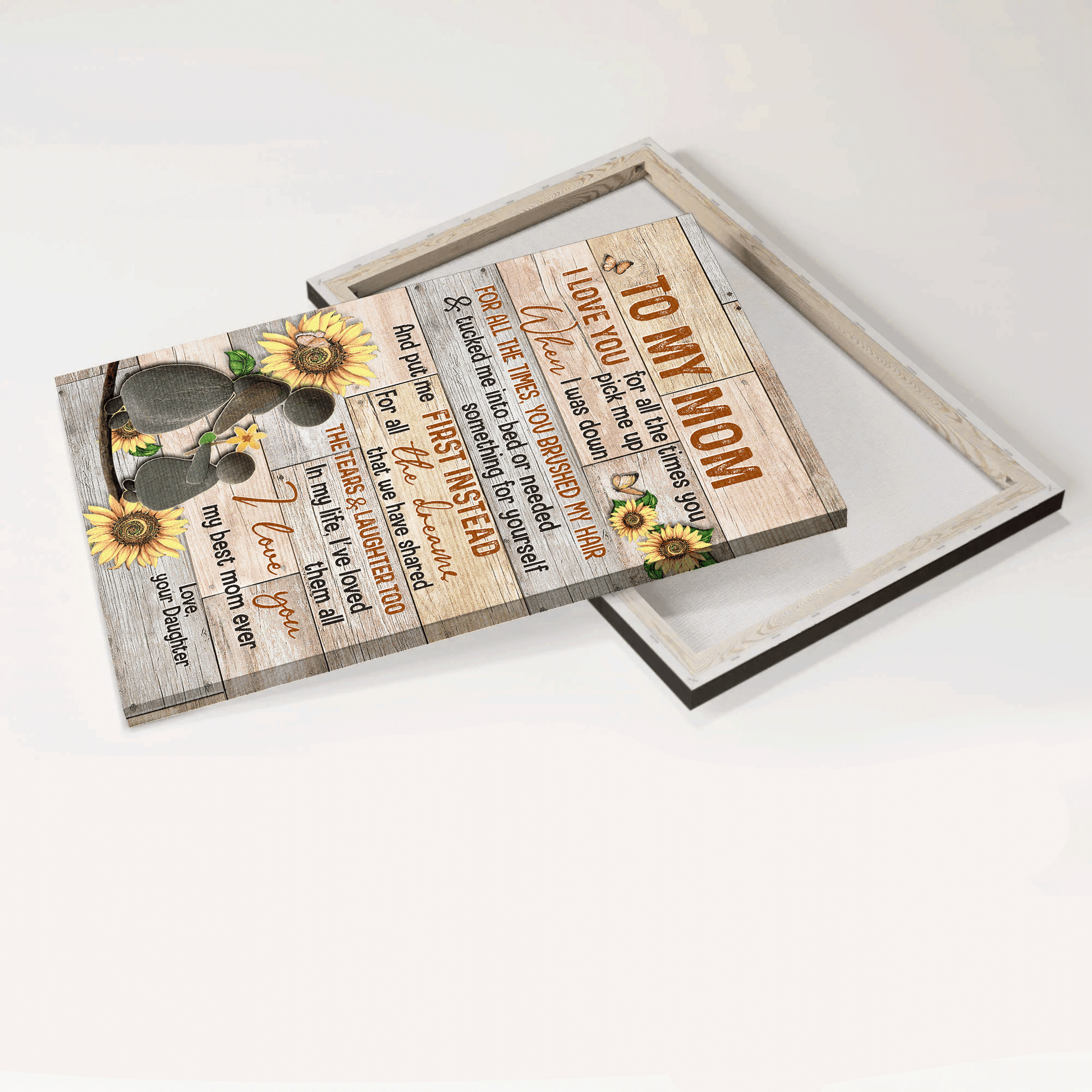 Family Portrait Canvas- To my mom canvas, Daughter to mom, Sunflower, Mother and child canvas- Gift for mom, mother- I love you for all the times you pick me up.