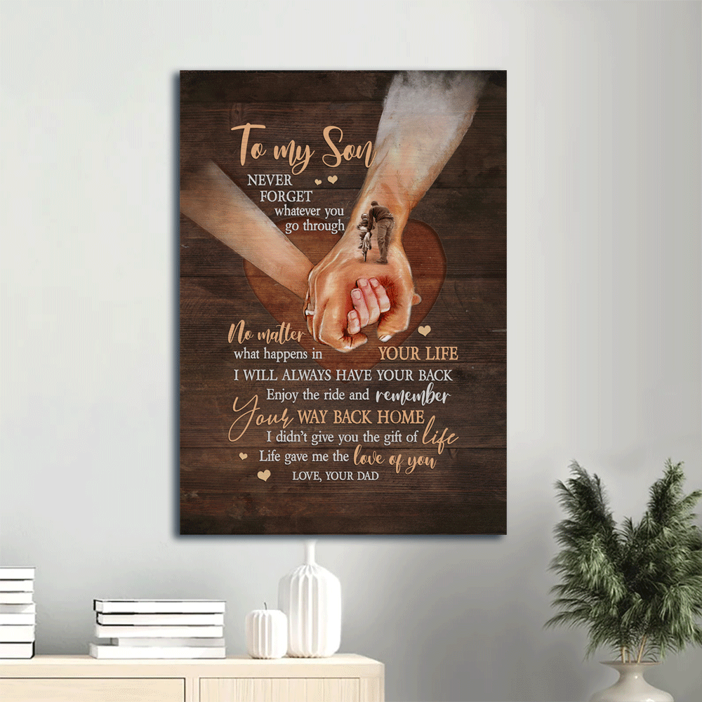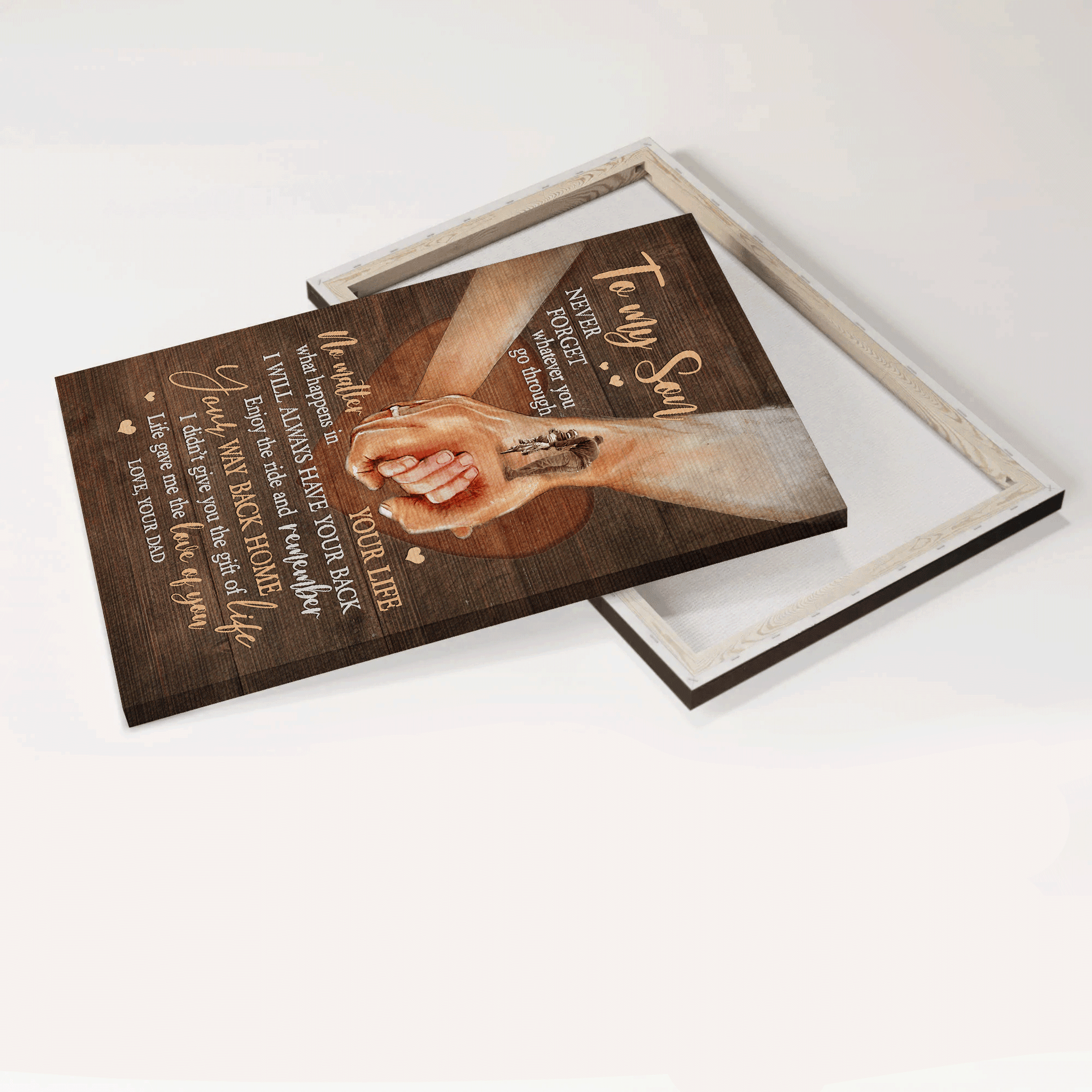 Family Portrait Canvas- To my son canvas, Holding hands, Sweet heart, Dad to son canvas- Gift for son- I will always have your back
