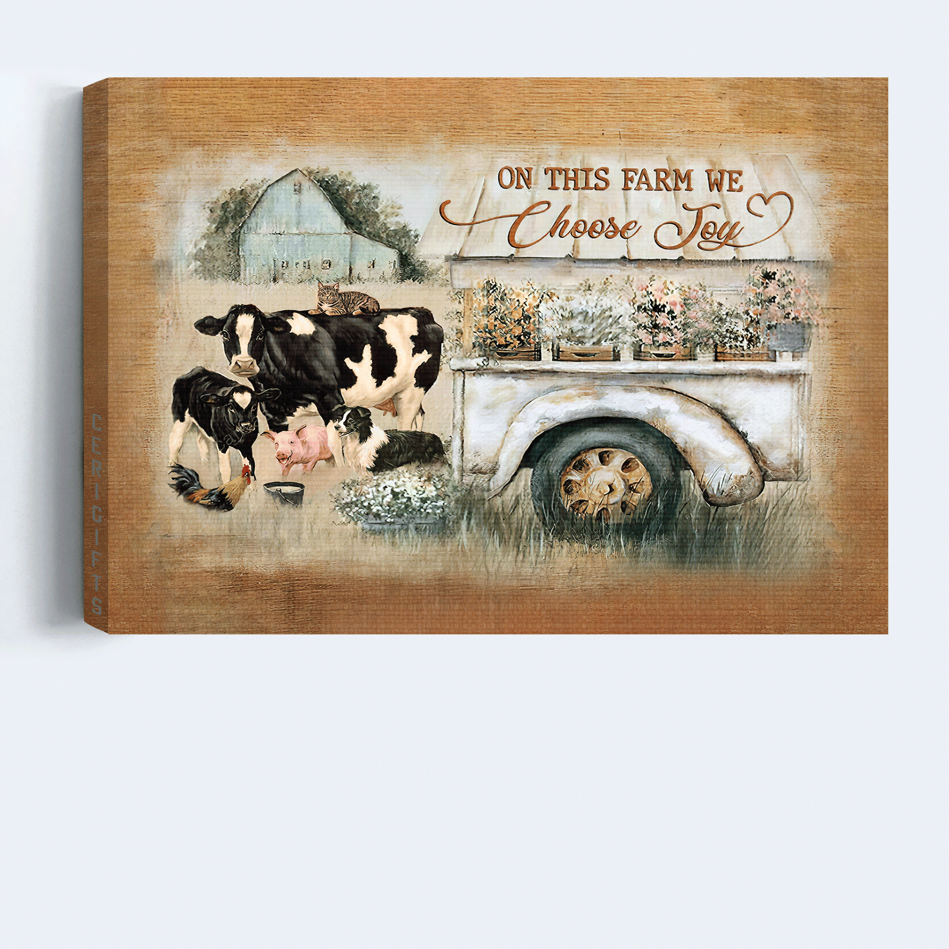 Farm Landscape Canvas- Animals, Flower Car, Peaceful Life Landscape Canvas- Gift For Farm Lover- On This Farm We Choose Joy.