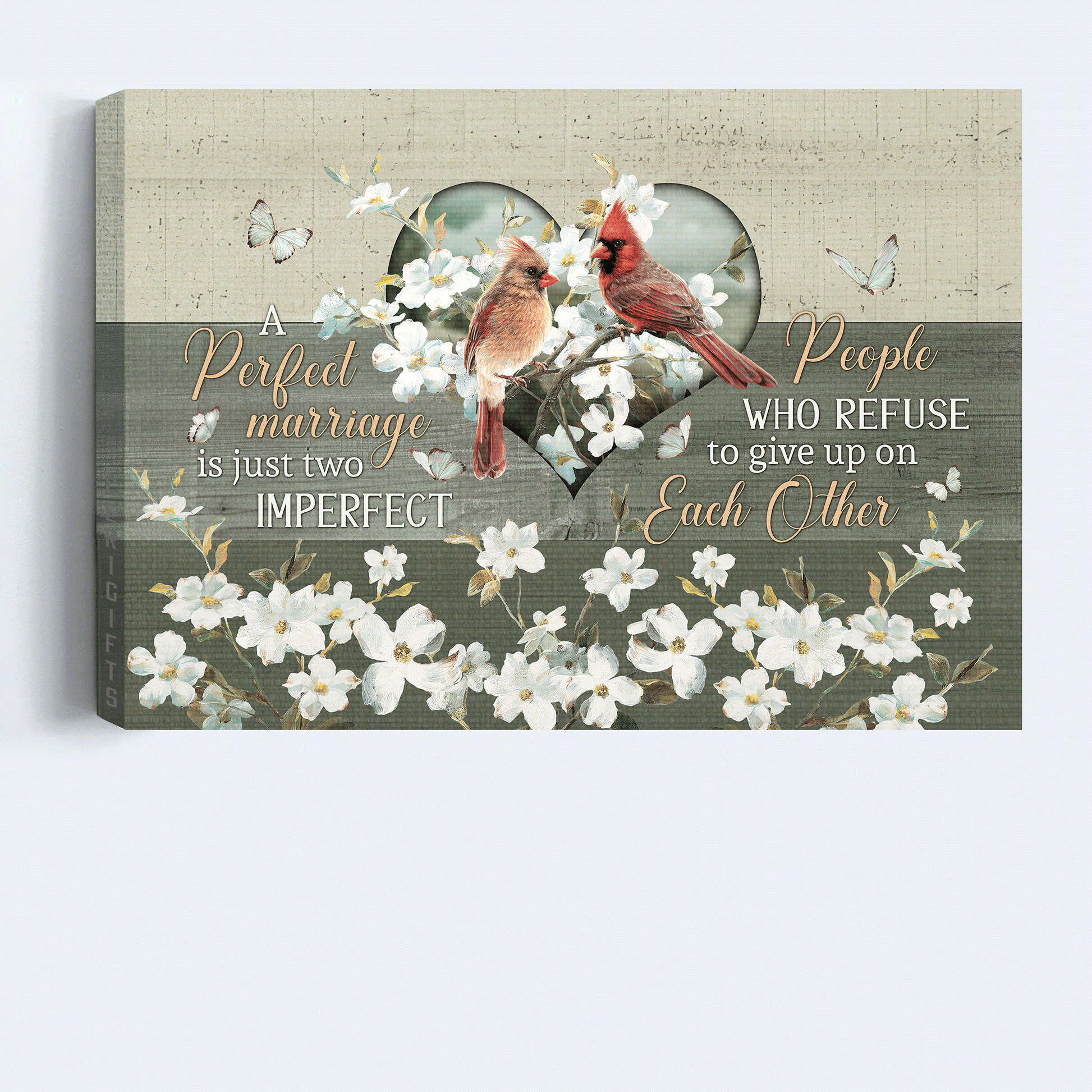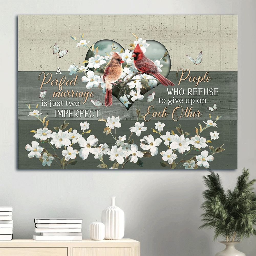 Farm Landscape Canvas - Beautiful cardinals, Cardinal couple, White flower Landscape Canvas - Gift For Farmer - A perfect marriage