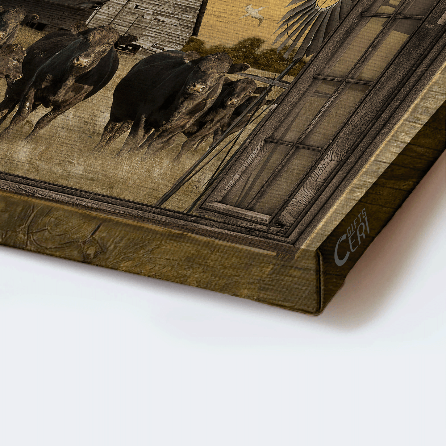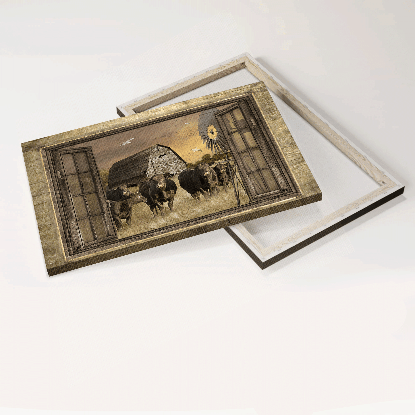 Farm Landscape Canvas - Old barn painting, Aberdeen Angus, Countryside Landscape, Windmill Landscape Canvas - Gift For Farmer Landscape Canvas
