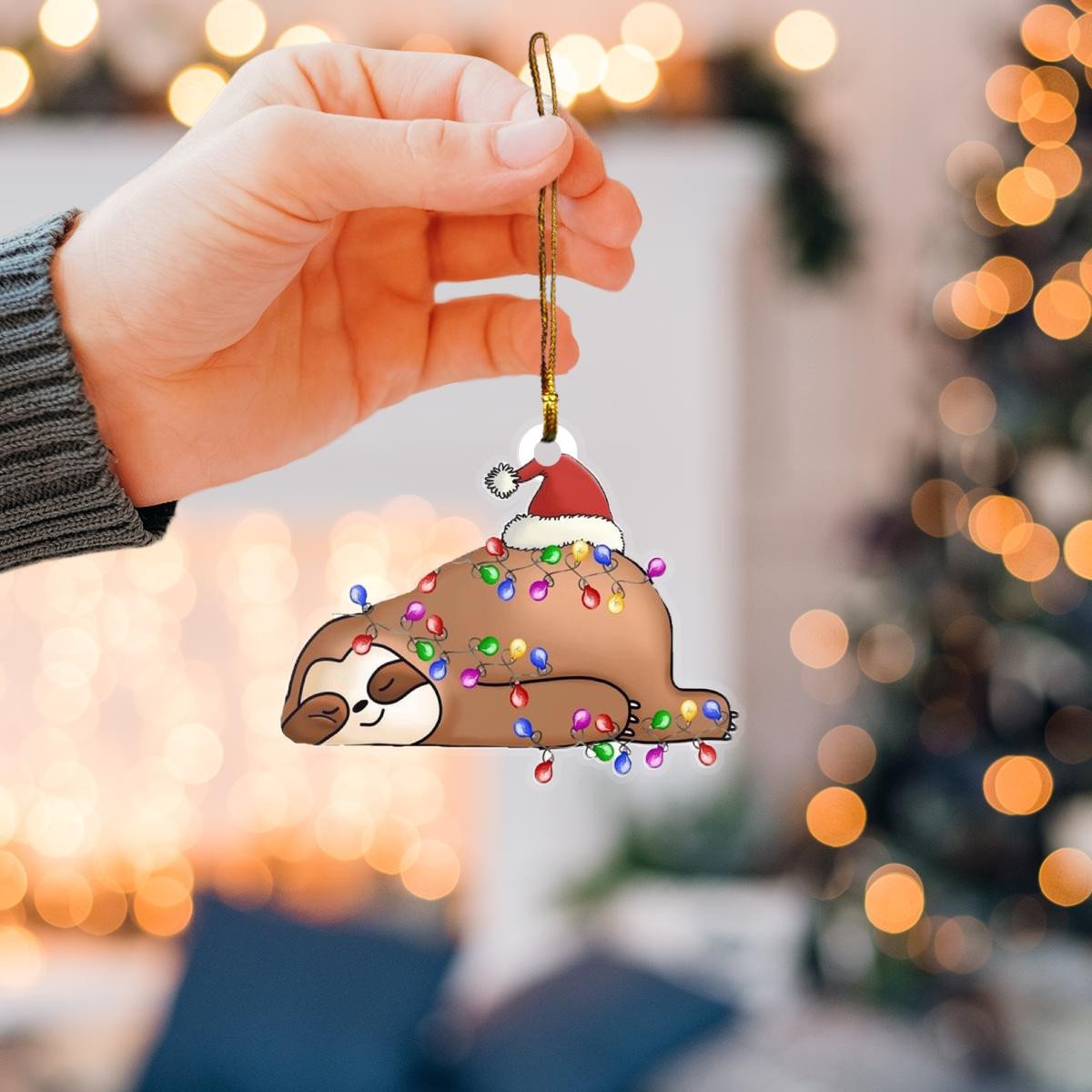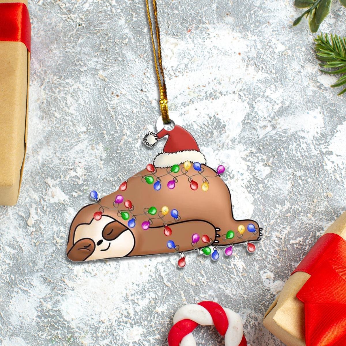 Funny Sloth Santa Claus Red Hat Custom Plastic Acrylic Ornaments Xmas Gifts for Family Friends - Best Ornament Gifts For Religious Christian, Gifts For Sloth Lover, Gifts For Family On Christmas.