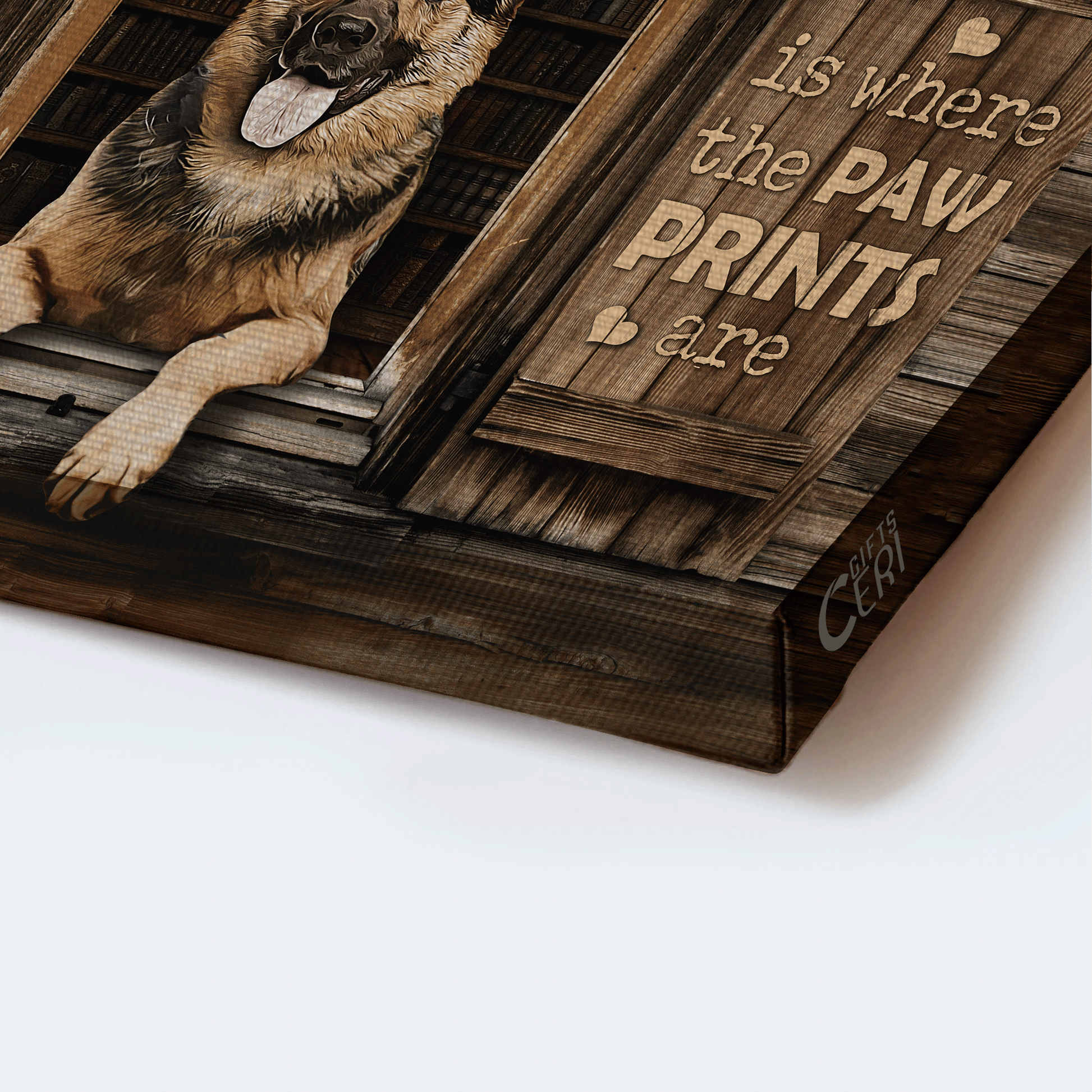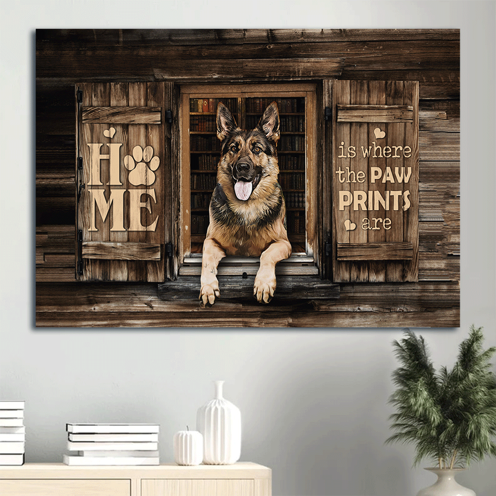 German Shepherd Landscape Canvas- German Shepherd, By the window canvas- Gift for dog lover- Home is where the paw prints are - Jesus Landscape Canvas Prints, Christian Wall Art